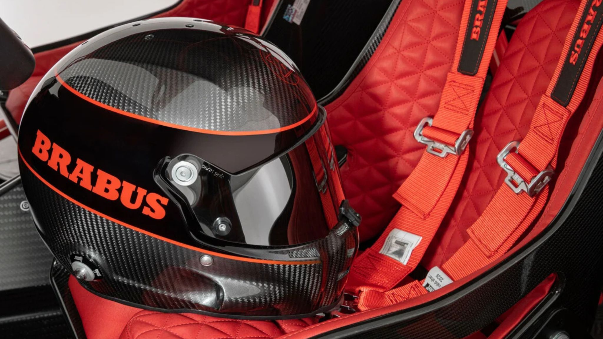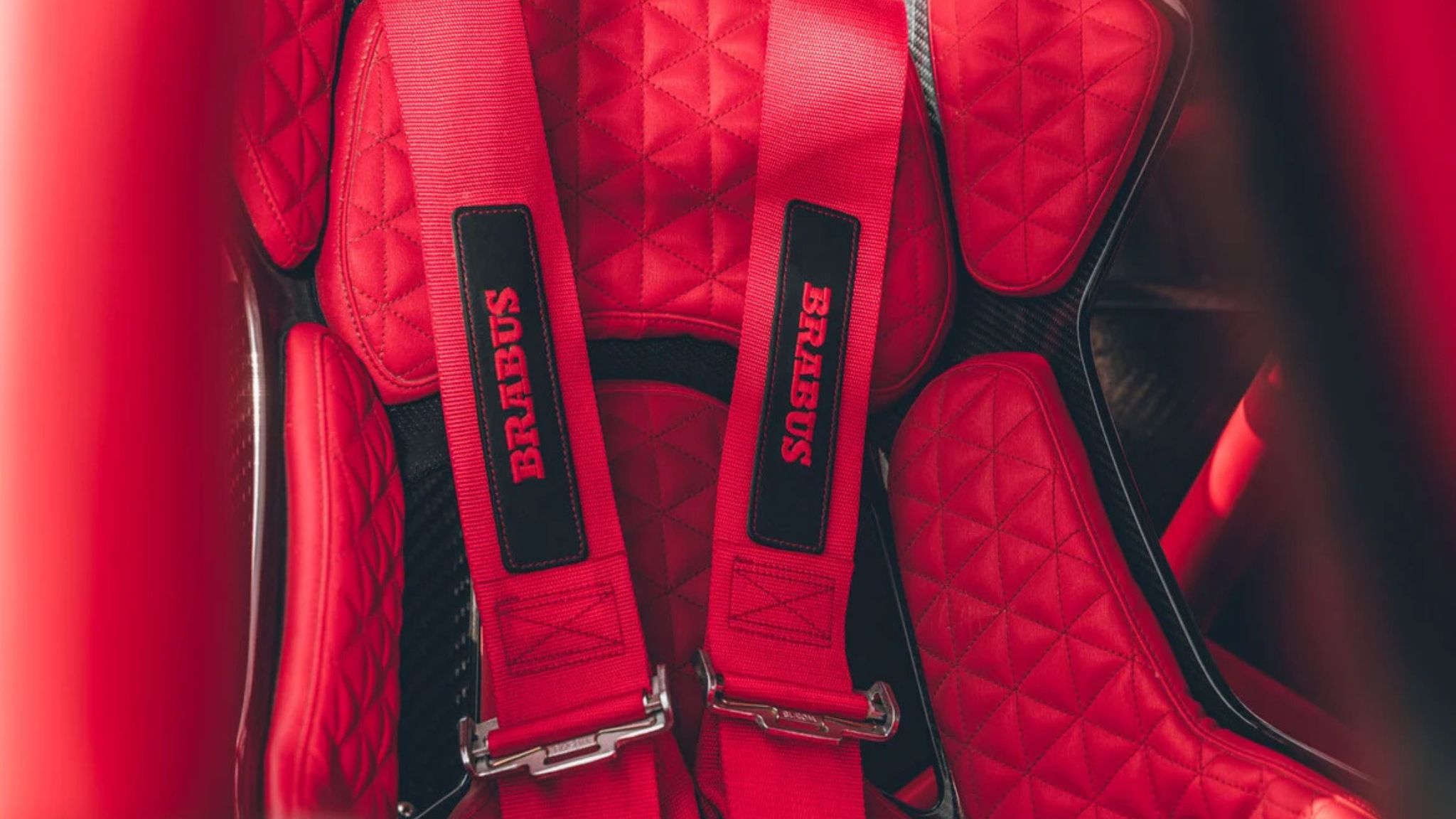 Casque en carbone Brabus et harnais de sécurité rouges dans le siège baquet Masterpiece du Brabus Crawler.