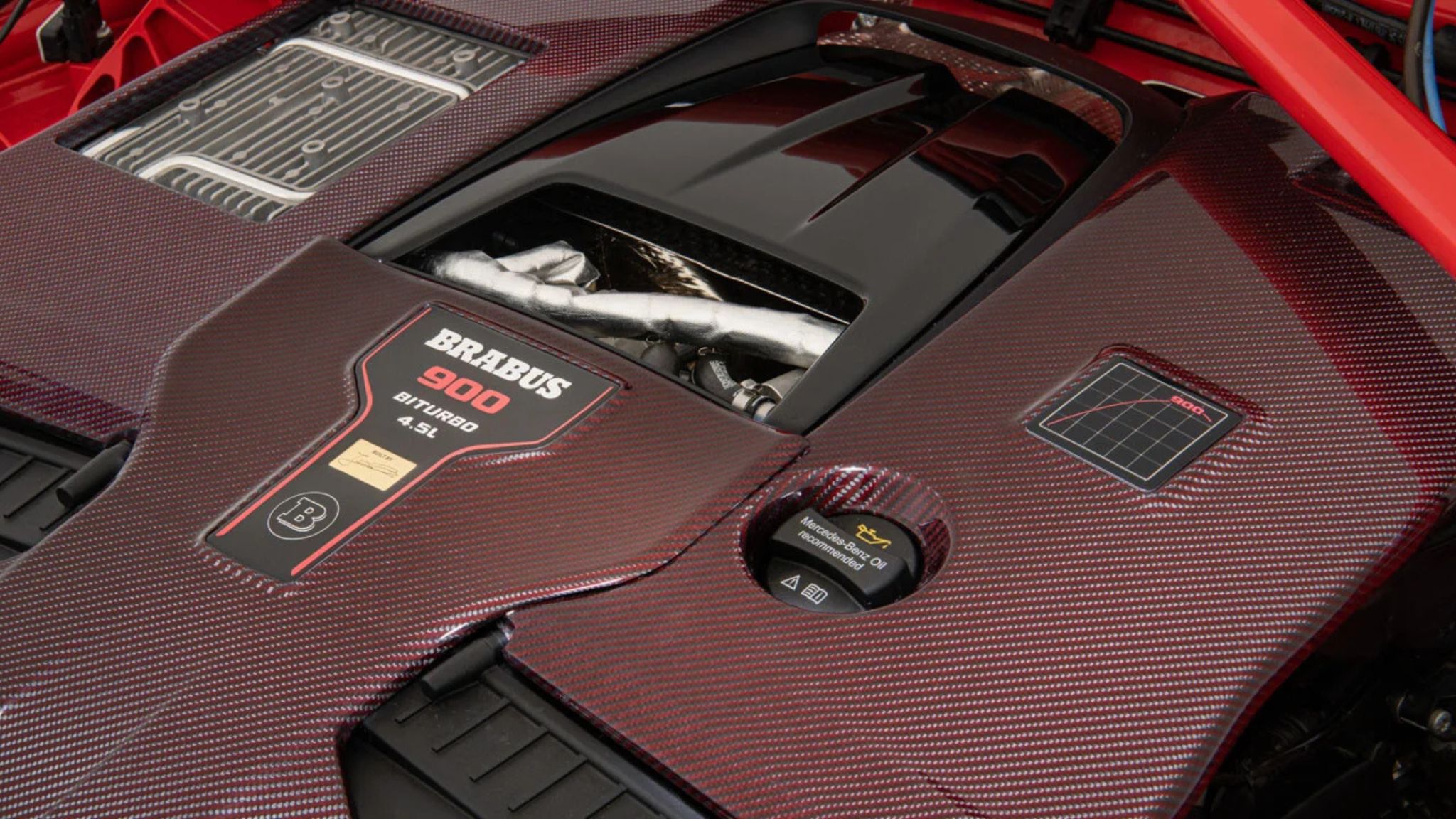 Sous le capot en carbone (avec des entrées d’air grosses comme des bouches d’égout), on retrouve le bloc V8 biturbo « Rocket 900 ».