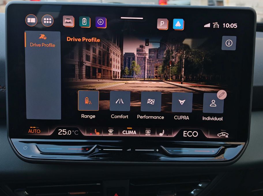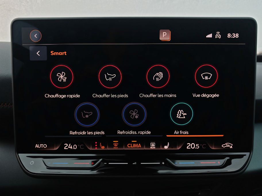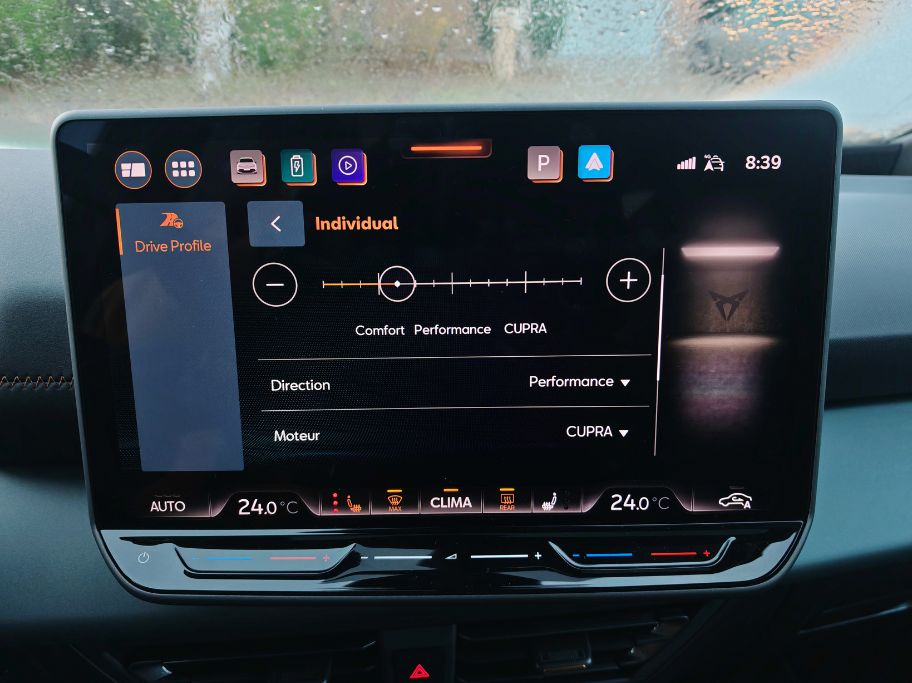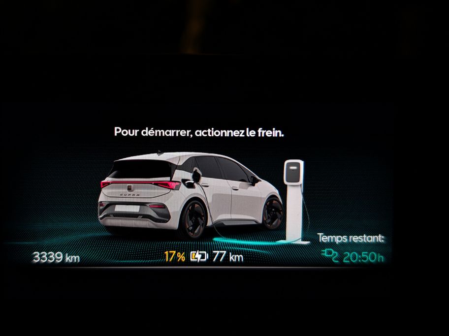 Un des nombreux avantages en électrique, c’est le freinage régénératif permettant la conduite à une pédale. Toutefois, on ne peut pas profiter de ce One Pedal en Cupra car l’automobile ne s’arrête pas, bien qu’elle ralentisse convenablement. Au contraire de la pédale de frein qui bouge en permanence. Comme un mort-vivant sortant de sa tombe, elle pousse le pied du conducteur pour se repositionner en hauteur. Une perception désagréable qui engendre aussi un manque de confiance au freinage.