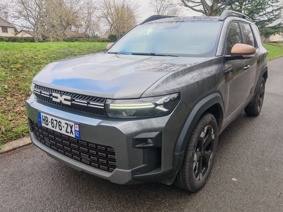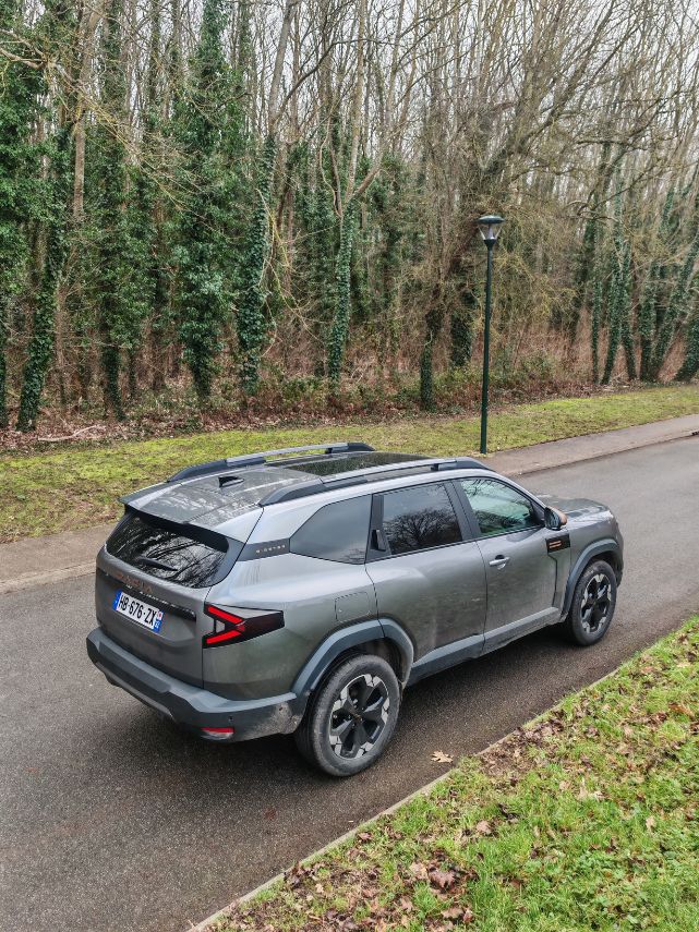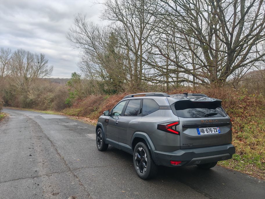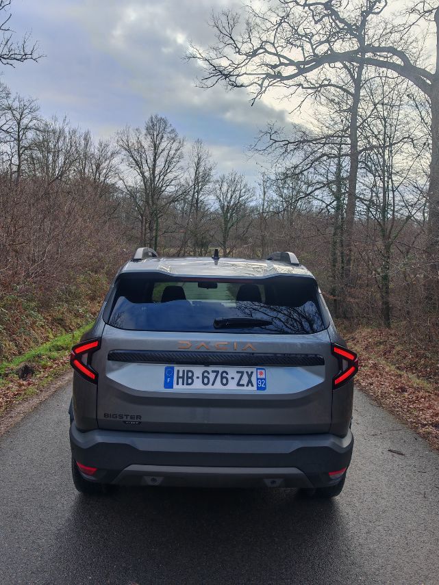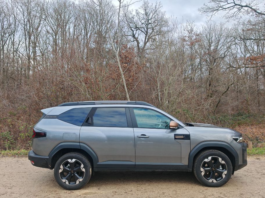En octobre 2024, je découvrais le Dacia Bigster lors de sa présentation au Mondial de l’Auto. Je me suis dit que j’allais l’essayer et nous voici en janvier 2026 pour honorer cette prédiction. Niveau esthétique, on continue la montée en gamme avec une apparence harmonieuse, solide, teintée de touches cuivrées (comme chez Cupra) autour du Gris Schiste complétée par des jantes en rosace de 18 pouces.