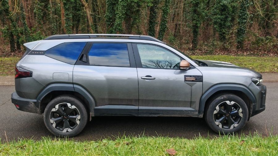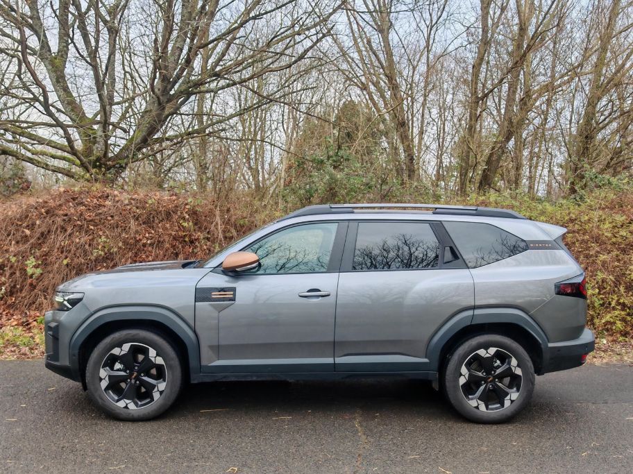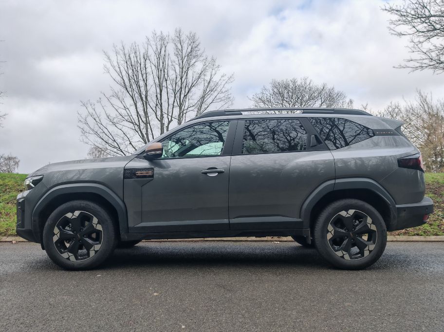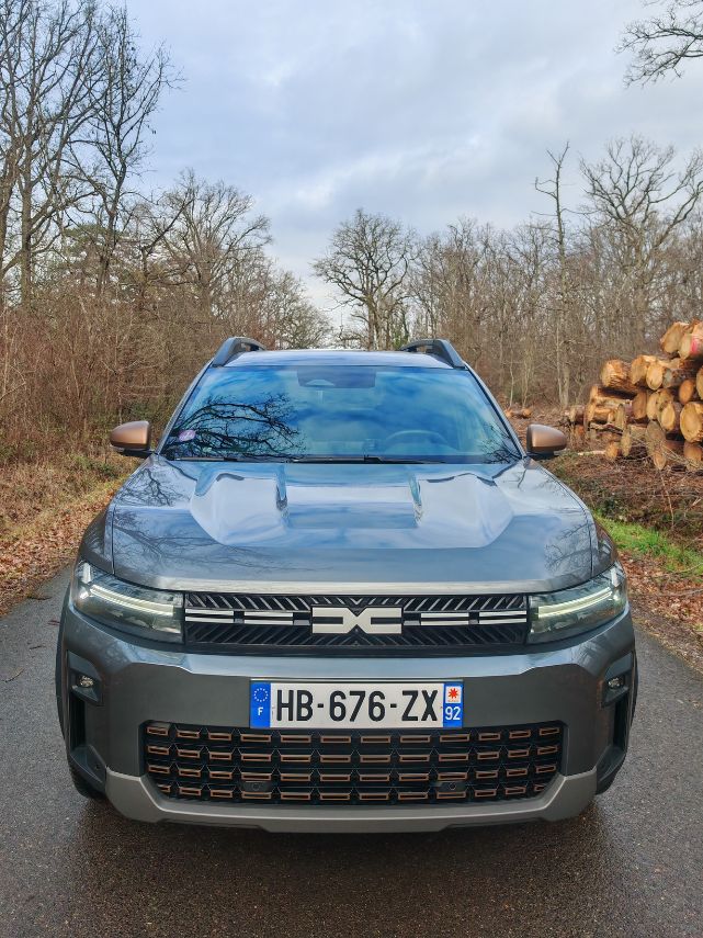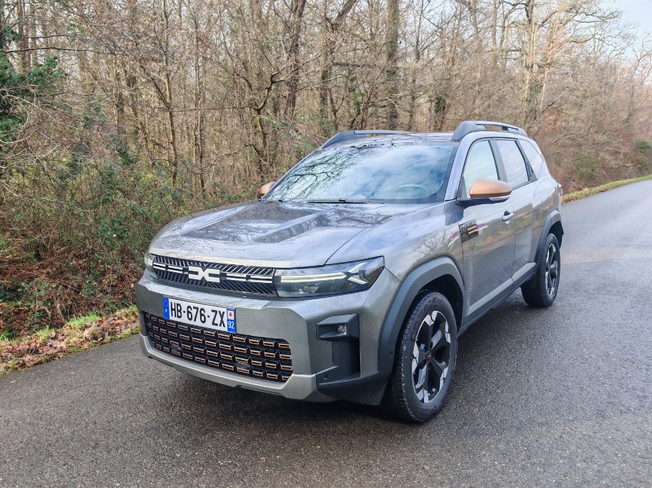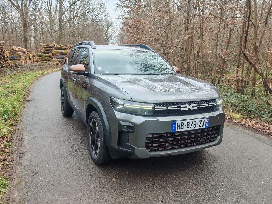 En octobre 2024, je découvrais le Dacia Bigster lors de sa présentation au Mondial de l’Auto. Je me suis dit que j’allais l’essayer et nous voici en janvier 2026 pour honorer cette prédiction. Niveau esthétique, on continue la montée en gamme avec une apparence harmonieuse, solide, teintée de touches cuivrées (comme chez Cupra) autour du Gris Schiste complétée par des jantes en rosace de 18 pouces.