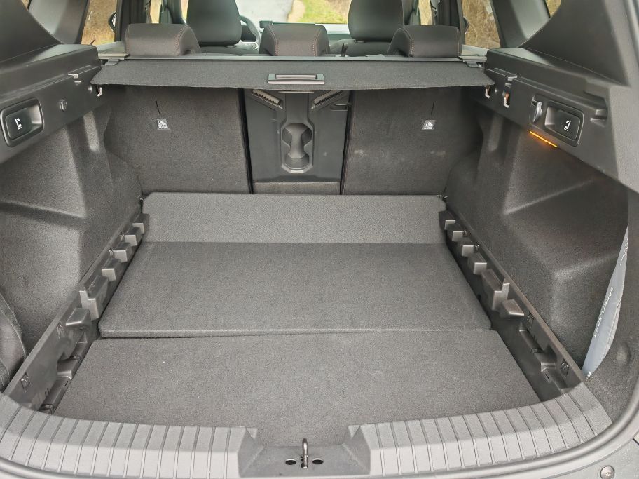 Dans un monde plus normal, vous apprécierez le confort des suspensions et surtout le grand espace offert par ce Bigster. C’est dans son nom et ce n’est pas usurpé. On a de la place à l’avant, à l’arrière, même pour 3 adultes et surtout dans le coffre. On passe de 546 litres à 1 851 litres au besoin, avec aussi des boutons à tirer dans le coffre pour rabattre les sièges. Pour la première fois de l’histoire chez Dacia, on profite d’un toit ouvrant panoramique. C’est exactement ce qu’il manquait à l’habitacle sombre du Duster. En parlant de lumière, on dispose même d’un accessoire à fixer sur le hayon pour y voir encore plus clair.