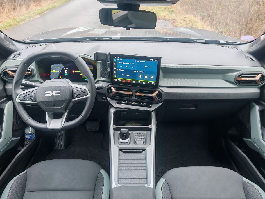 Le couple max s’annonce à 205 Nm, ce qui correspond au couple en électrique. On regrette de ne pas en avoir plus sous le pied pour s’insérer et dépasser. Surtout quand ce Dacia revendique 155 ch (158 dans la réalité) et qu’on commence à vouloir les compter un par un. Certes, un SUV familial de 4,57 m n’a pas vocation à gagner toutes les courses entre chaque feu rouge mais on ne serait pas contre plus d’agrément.