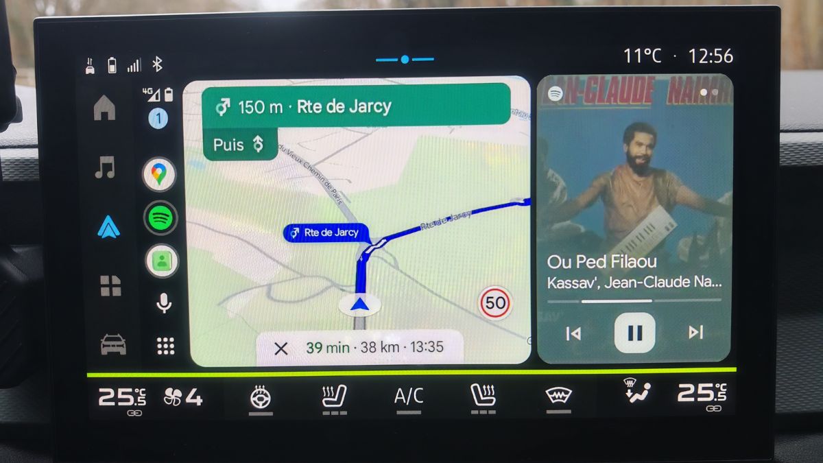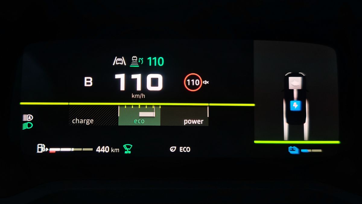 Qu’importe la motorisation, on aura ces similitudes dans l’habitacle. Commençons par l’écran de 10,1 pouces. Simple et ergonomique. Des bons points. Lent et peu chatoyant. Des mauvais points. Pour le volant chauffant, il fallait entre 3 et 4 clics pour l’activer. Aucune coupure avec Android Auto sans fil et une sono basique. L’instrumentation numérique de 7 pouces derrière le volant intègre Google Maps et répond aux attentes tout comme le régulateur adaptatif bien qu’il oblige à plusieurs manipulations peu intuitives pour l’engager.