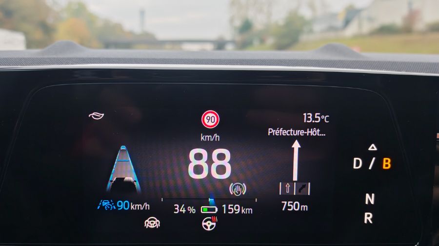 On ne parlera pas d’une direction précise, mais on peut presque évoquer une notion de plaisir au volant. Si on fait volontairement le débile, il ne sera pas impossible d’envisager un tête-à-queue. Autrement, la réponse à l’accélérateur (qu’importe les modes de conduite) offrira l’objectif escompté de dépassements et d’insertions (largement) en toute sécurité. J’en ai bien abusé car le couple immédiat me régale à chaque fois. Surtout quand celui-ci atteint les 545 Nm. De quoi s’amuser à coller le crâne des passagers sur leurs appuie-têtes. Ainsi que la joie certaine de faire découvrir les charmes de l’électrique à Tileugazy, qui roule en Kangoo 1,5 DCi 75 ch avec 180 Nm de couple.
