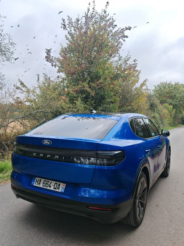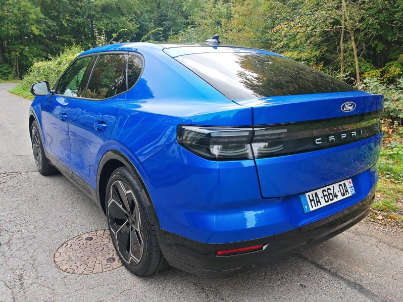Malgré une masse excessive de 2 tonnes, le comportement routier du Ford Capri détonne pour la catégorie des SUV 100 % électriques avec un réel dynamisme grâce à sa transmission propulsion et sa puissance bien maîtrisée. On ressent un confort d’utilisation au quotidien avec notamment un assemblage qualitatif dans l’habitacle. Malheureusement, des erreurs d’ergonomie (boutons haptiques sur le volant et sonnerie débile à la fermeture du hayon électronique) gâchent l’expérience pourtant plaisante. On ne peut que souhaiter une nouvelle version restylée pour corriger ces éléments afin que ce ne soit pas fini, Capri.