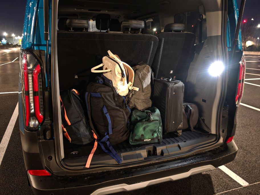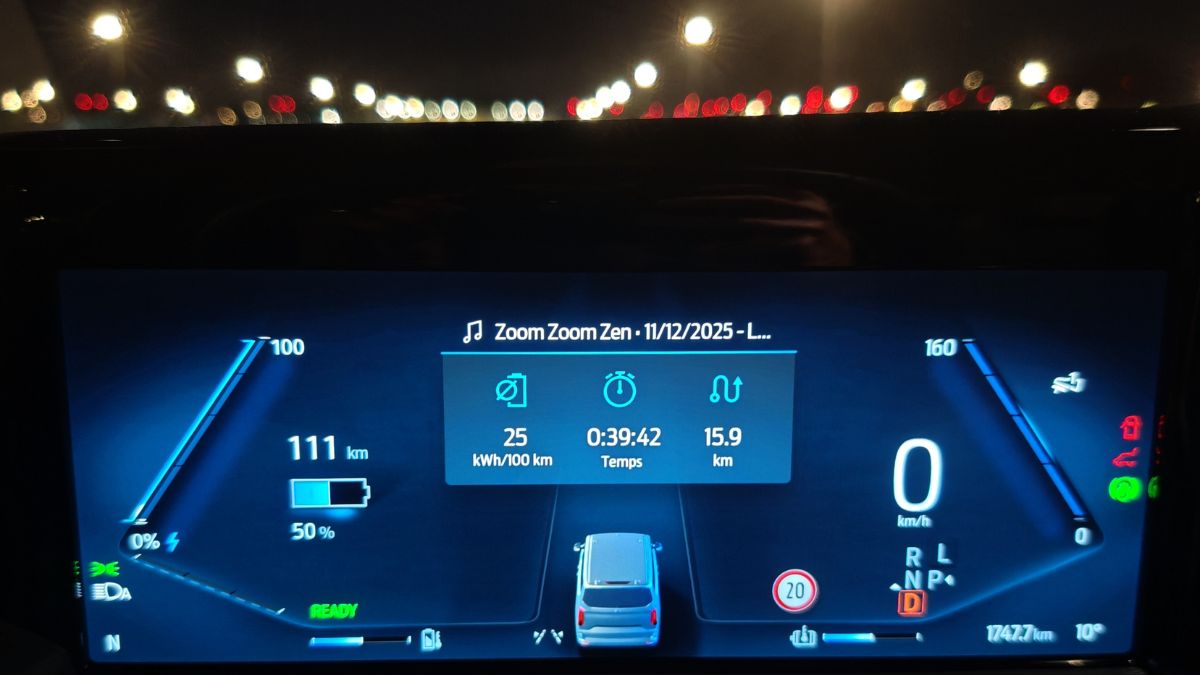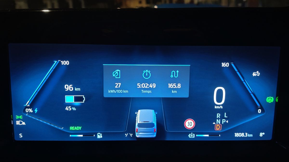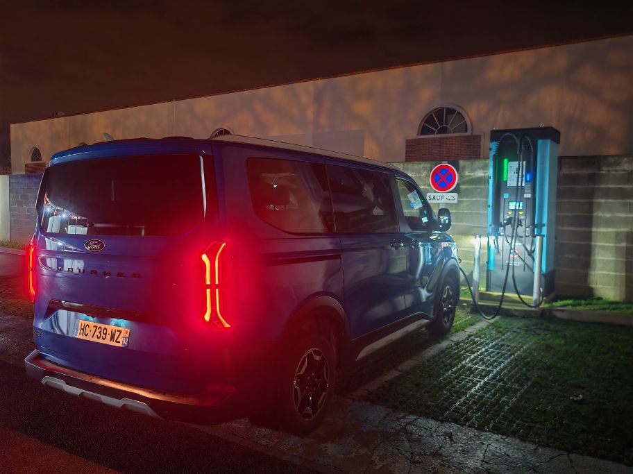 Comme pour une voiture thermique, la taille du réservoir, ça compte. Avec ce Ford E-Tourneo Custom, nous avons une batterie de 64 kWh. Donc dans la moyenne du marché français en 2025. Sauf qu’il ne s’agit pas d’un SUV compact classique mais bien d’un utilitaire pour 8 adultes. Dès lors, la consommation, surtout en hiver, va grimper par rapport à, au hasard (non), un Ford Capri. Dans le premier cas, cela donne 26 kWh/100 km (après 241 bornes) et dans le second cas, seulement 15,5 kWh/100 km, certes avec des températures idéales. Pour un véhicule de transport, il faudrait une batterie de 99 kWh, comme celle déjà disponible au catalogue du constructeur américain avec le Mustang Mach-E AWD.