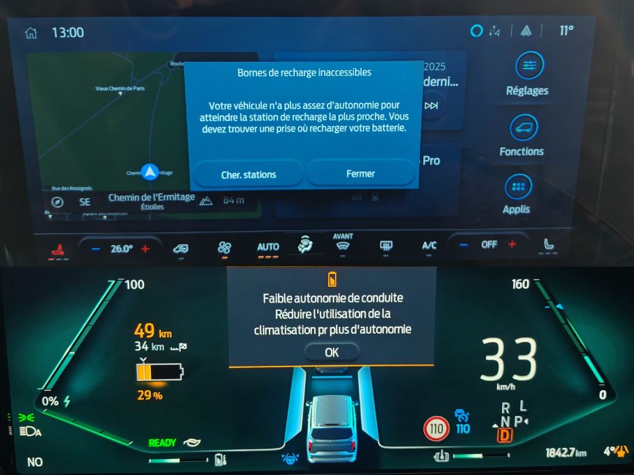 Pour un trajet familial avec Miss Novichok, mes parents, ma sœur et son conjoint, il me fallait un véhicule avec 6 places. Je souhaitais aussi leur faire découvrir le charme de l’électrique entre le couple immédiat et le confort acoustique. Me voilà donc au volant de ce magnifique Ford E-Tourneo Custom avec ma casquette de VTC. Heureusement que le parcours à Orly se limitait à seulement 30 km aller-retour au vu de l’autonomie de cette camionnette. Impossible d’envisager de longues distances du fait de la taille de la batterie et la relative faible rapidité de recharge.