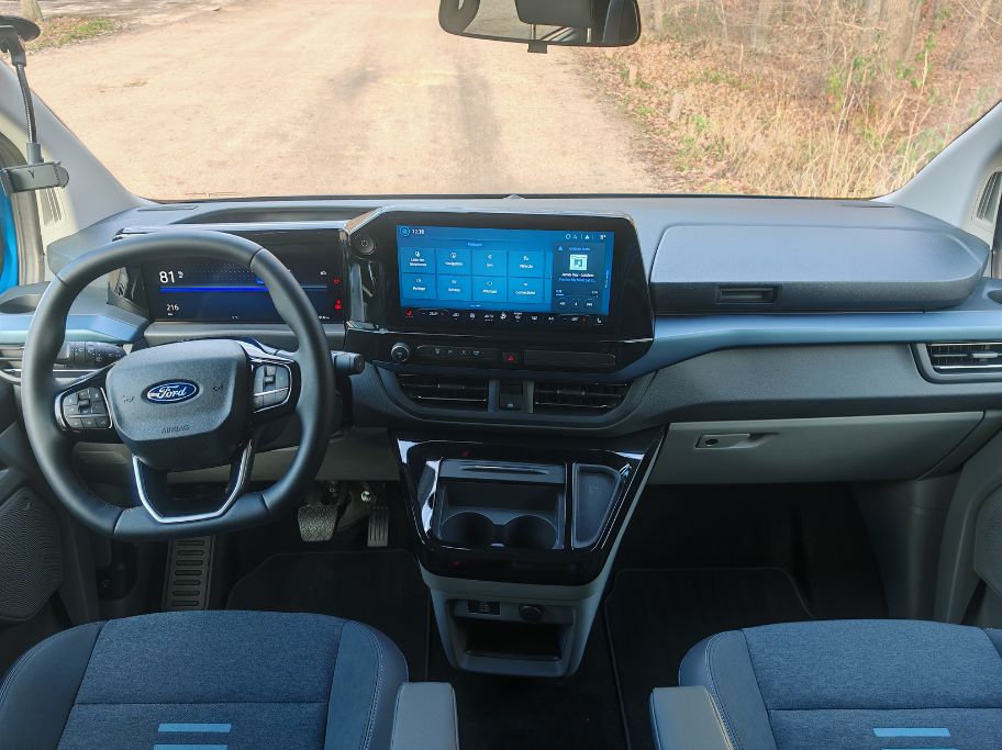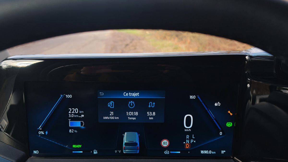 Beaucoup de conjectures et surtout de souhaits pour ce Ford E-Tourneo Custom car j’ai adoré sa conduite et ses prestations. Déjà parce qu’on retrouve une transmission propulsion. Avec le ressenti d’une conduite propulsion. C’est-à-dire plaisante, à enrouler dans les virages pour tendre vers un réel dynamisme. Cela peut paraître antinomique pour ce segment mais on s’amuse au volant. Surtout avec un aussi bon châssis qui n’engendre pas de roulis. En Continental VanContact Éco, même sur le mouillé, ça tient le pavé.
