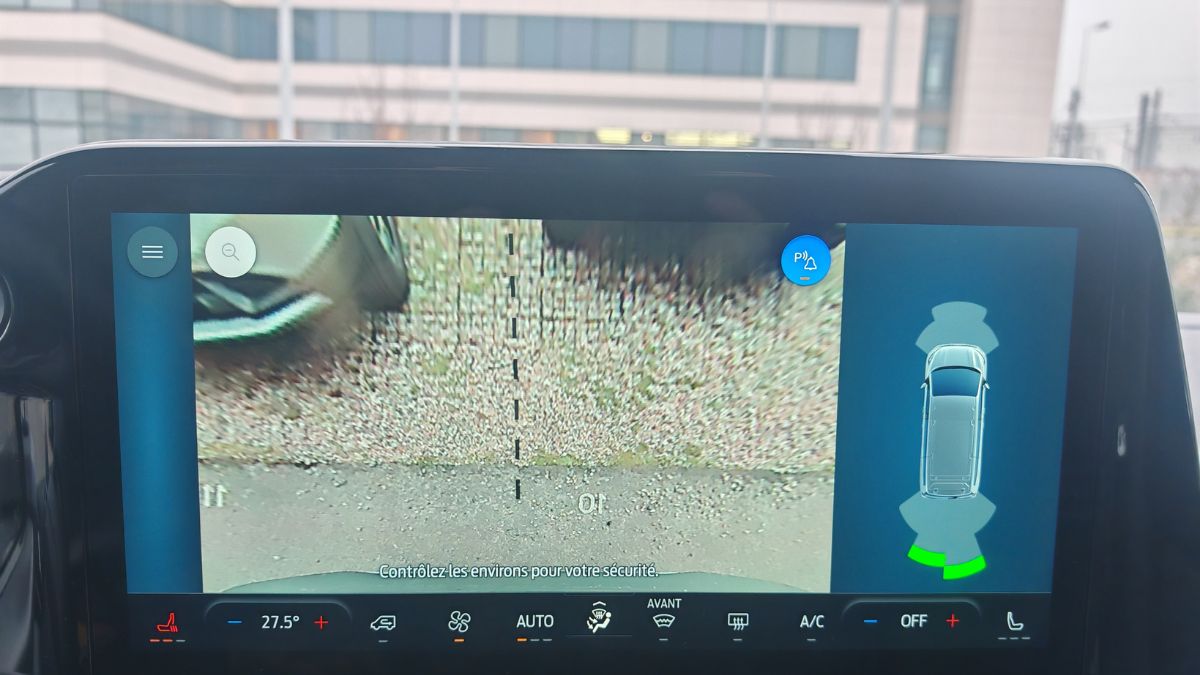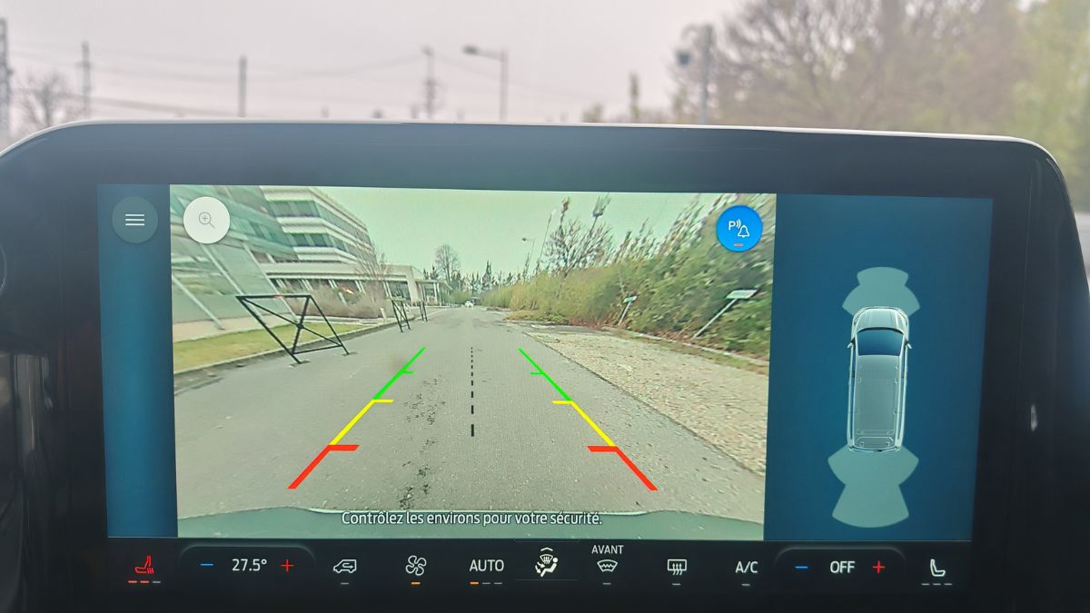 Pour 5,05 m et dans cette finition L1 340 H1 Active à 63 000 €, on s’attend (légitimement) à une caméra 360. Que nenni. Une simple caméra de recul à la résolution décente. Il faut rajouter 380 € pour mieux appréhender son environnement. Pour autant, je chipote mais je n’ai eu aucune difficulté à manœuvrer avec 11,6 m de rayon de braquage (mieux qu’une Tesla mais c’est facile) et des roues avant qui tournent énormément étant libérées délivrées de la transmission. Les rétroviseurs en deux parties aident aussi.