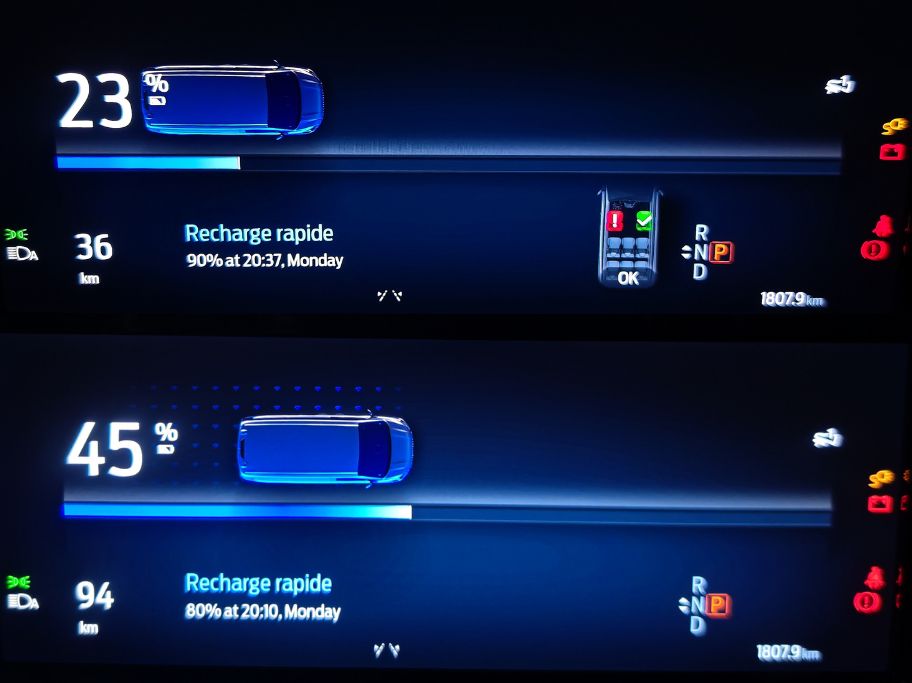 C’est réellement le principal défaut, cette sous-dotation et on pourrait aussi réclamer une charge plus rapide. Avec 125 kW max en DC, on tend vers 40 min pour passer de 10 à 80 % pour récupérer 150 km. Trop long, beaucoup trop long pour un si mince résultat. Pire pour moi à l’usage sur une borne 50 kW (avec un pic à 43 kW), j’ai obtenu 60 km en 21 min. Nul de chez nul. Dans l’idéal, il faudrait un 20 à 80 % en 25 min pour gagner 200 km avec une grosse batterie offrant une autonomie de 350 km. Finalement proche des 325 km WLTP annoncés mais irréalistes. Puisque j’ai expérimenté et on tombe à 225 km dans la réalité.