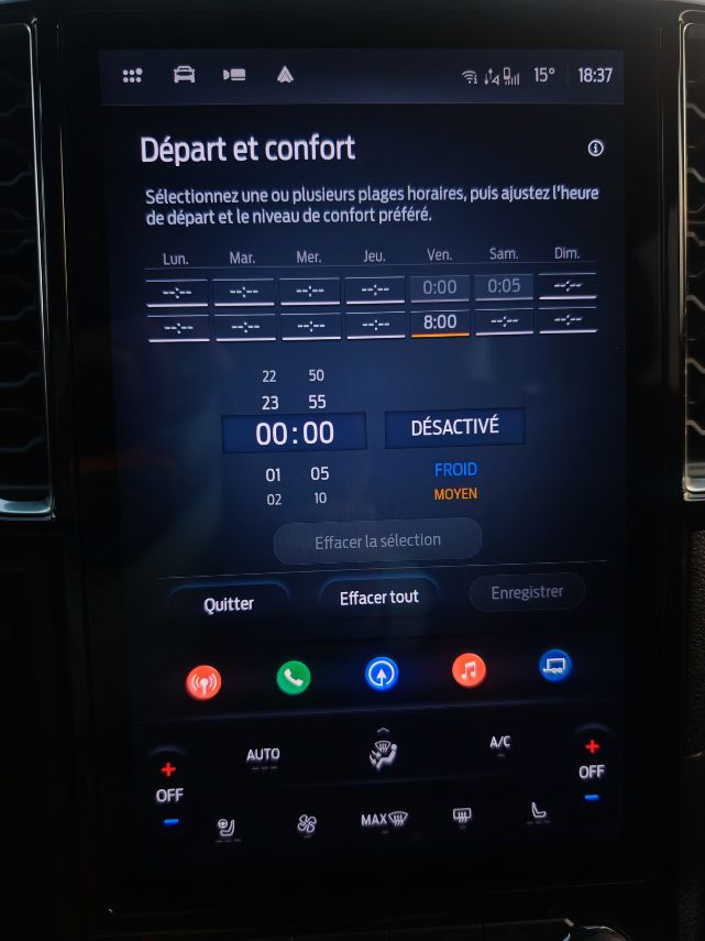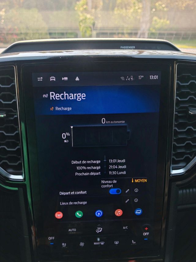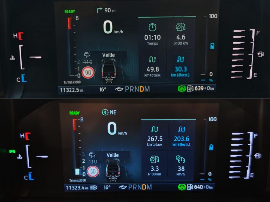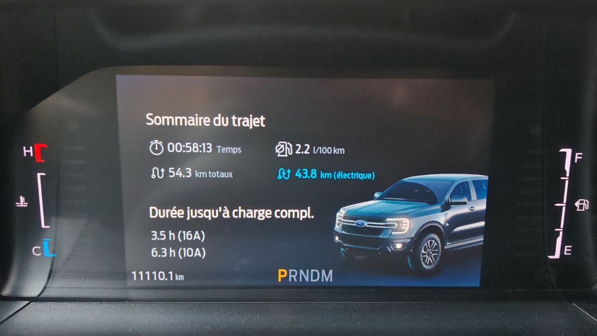Disposant d’une prise renforcée, j’ai profité de recharges quotidiennes pour ne pas dire nocturnes durant 8h avec un câble de 1,8 kW. On réduit ce temps de moitié en investissant dans un câble de 3,7 kW. Pour encore moins dépenser, les heures creuses sont à favoriser mais on regrette la programmation nullement intuitive du Ranger. Au point d’avoir merdé sur le dernier jour mais cela m’a permis de constater les consommations en hybride simple à 4,6 l/100 km sur 50 km avec de nombreux bouchons. Une belle réussite même si on tourne autour des 10 l/100 km sur un parcours routier d’après les confrères.