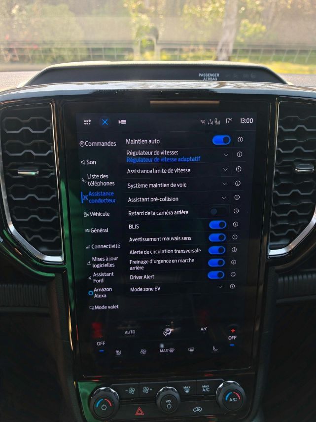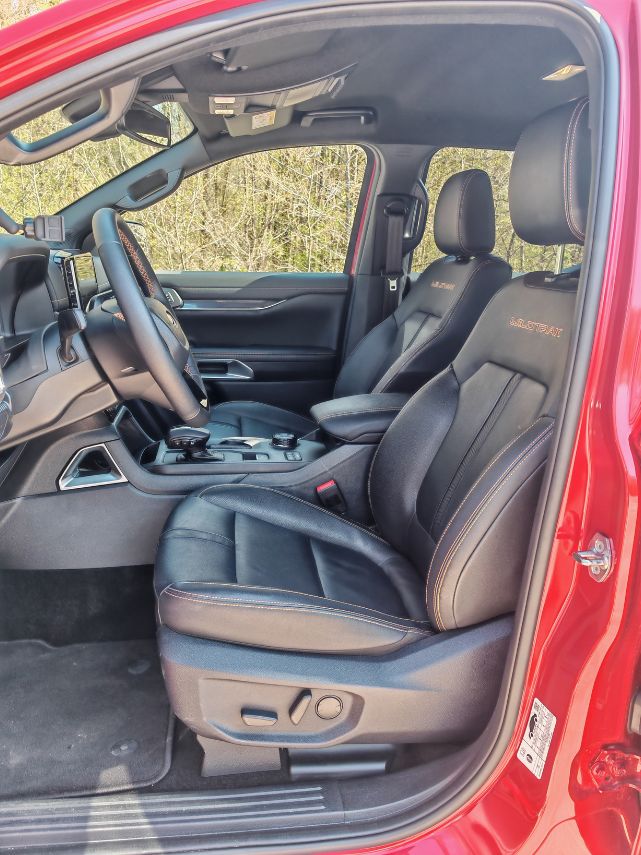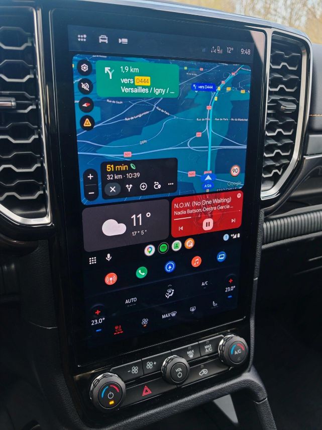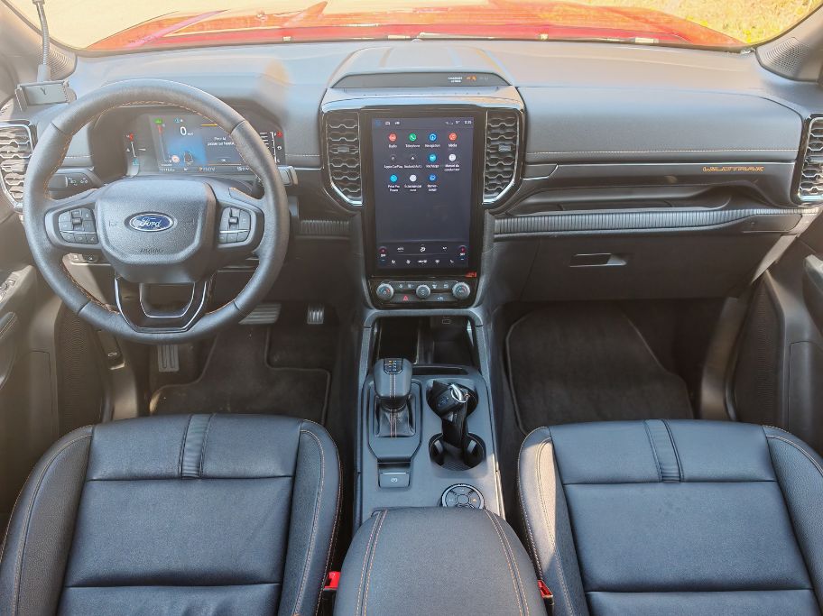 Quel confort pour un pick-up. Surtout dans cette finition Wildtrak même s’il manque une caméra 360 qui devient de série uniquement en Stormtrak. C’est une vilaine pingrerie car on parle quand même d’un camion haut perché donc on s’attend à voir les alentours, notamment en ville. On apprécie les suspensions et la qualité des assises (chauffantes et réglables électriquement) tout comme celle des matériaux dans l’habitacle. Aucun bruit de mobilier et l’ensemble ressemble drôlement à du premium. La sono est bonne. Malheureusement, les multiples déconnexions à Android Auto sans fil gâchent l’enthousiasme.