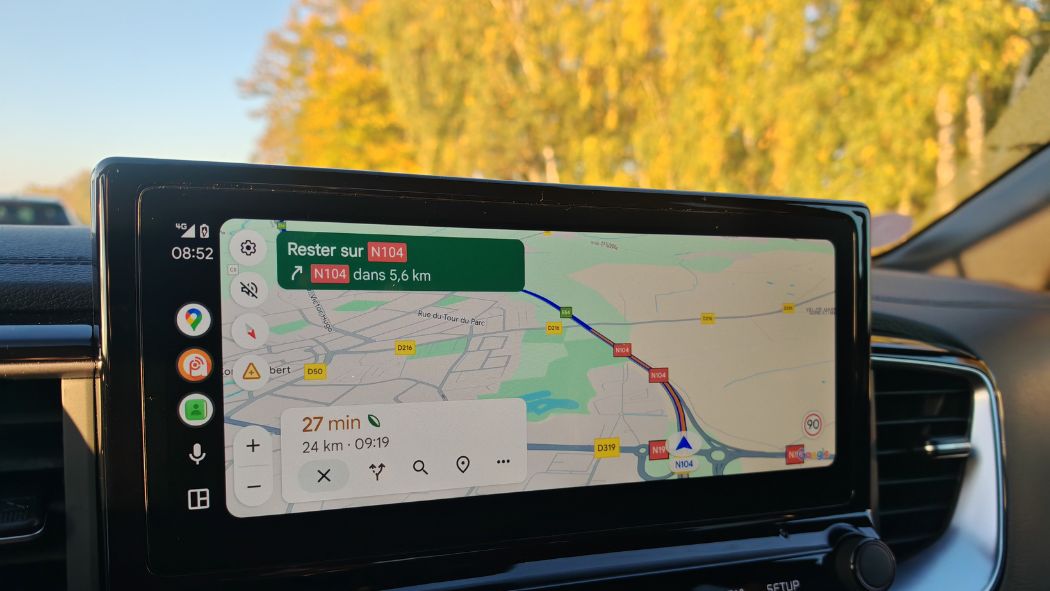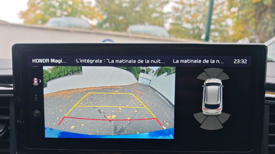 J’ai donc refusé de tester le régulateur adaptatif (sauf pour la photo) tant les aides font tout l’opposé d’aider. Une refonte en profondeur de l’ergonomie des écrans est à prévoir. Contrairement à l’instrumentation numérique devant le conducteur qui offre une bonne lisibilité des informations nécessaires. Puis j’aime bien ce violet. Il passe au rouge en mode Sport. On apprécie forcément les boutons physiques pour régler la climatisation. Avec un rond pratique pour la température comme sur le Captur. Le levier PRND accroche souvent pour la marche arrière, même en appuyant sur la gâchette. La caméra de recul ne jouit pas d’une résolution de qualité. Cela ne gêne pas vraiment de jour contrairement à la nuit où tous les chats sont gris on ne voit rien. On perçoit les bruits d’air mais aucunement les trains roulants.