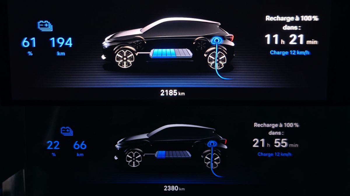 En soi, 54 kWh pour une batterie sur une citadine, c’est bien. Mais avec des consommations de 18,8 kWh/100 km après 391 km (c’est toujours mieux que les 21,2 en Junior sur la même distance et dans les mêmes conditions), cela donne 260 km d’autonomie. Le tout pour 43 500 €. Ne comptez pas sur moi pour vous dire que c’est 5 000 € de plus qu’une Tesla Model 3 qui aura le double d’autonomie. Oups. Encore une comparaison non valable car l’une se veut une citadine sportive et l’autre une berline familiale.