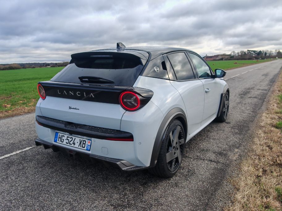 HF chez Lancia fait forcément référence à la Delta HF de la grande époque du Groupe B en rallye. En 2026, c’est le badge de la sportivité électrique. Oxymore ? C’est toujours la question avec les voitures électriques. Peut-on parler de sportivité sans fureur mécanique et thermique ? Je crois que oui mais différemment.