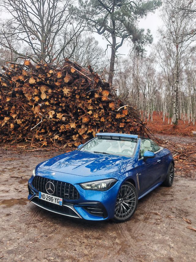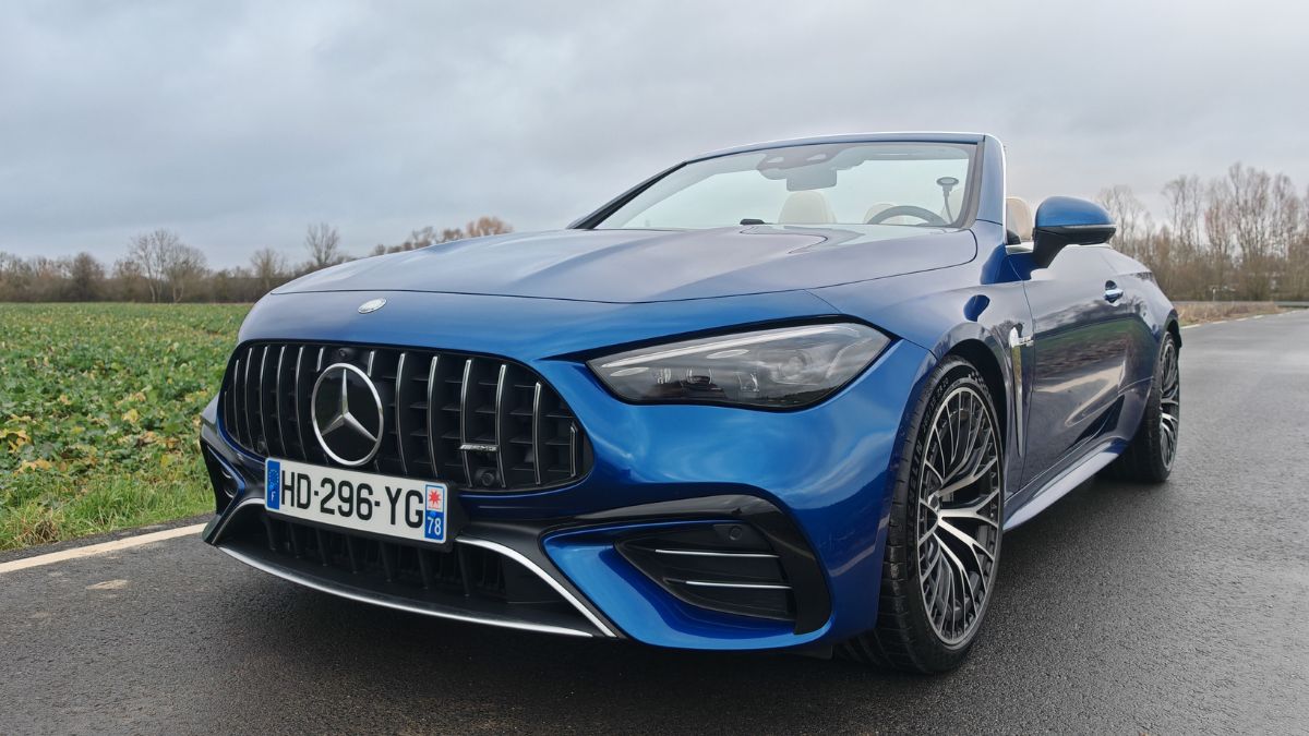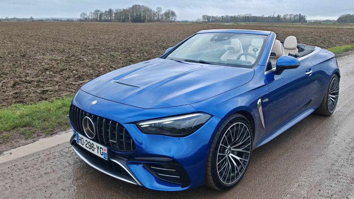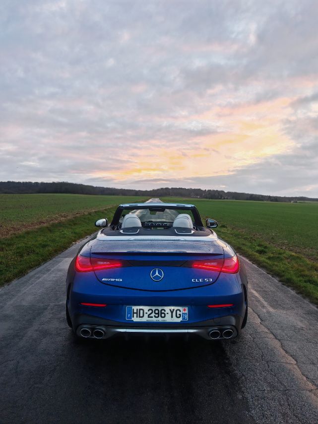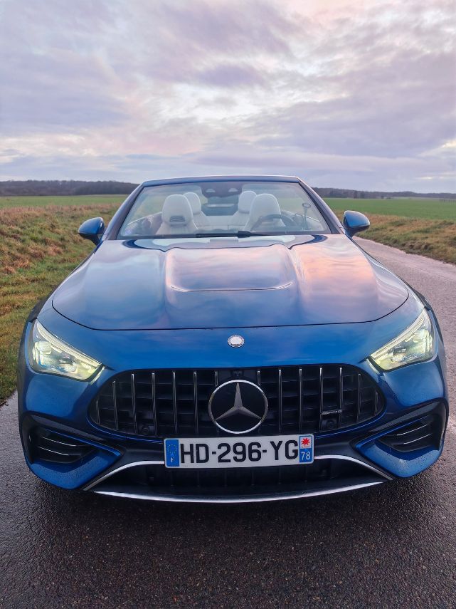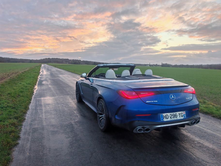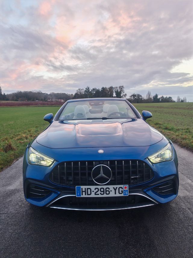 À l’occasion d’un nouveau rassemblement (Hoonited Yvelines Festival) en parallèle de Rétromobile 2026, j’ai sollicité le prêt d’une AMG. Notamment pour ce souvenir ému de l’A 45 S qui demeure encore aujourd’hui l’une des caisses les plus attachantes de ma (longue) liste d’essais. Au vu de la période hivernale, un Classe G 63 AMG aurait sûrement été plus pertinent qu’un CLE 53 Cabriolet. Pour autant, je n’allais pas faire ma diva et je commence à avoir une certaine expérience des décapotables hors saison comme avec le Z4 ou le Cabrio JCW. C’est donc parti pour 5 jours de croisière en paquebot 4 places avec les alizés dans les cheveux. Enfin, surtout la pluie dans la tronche.