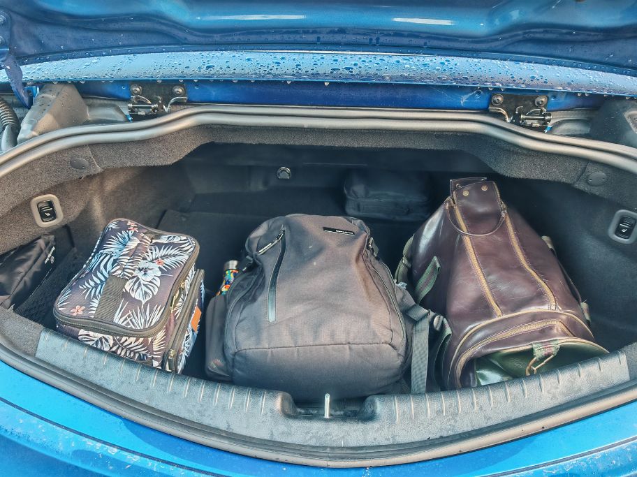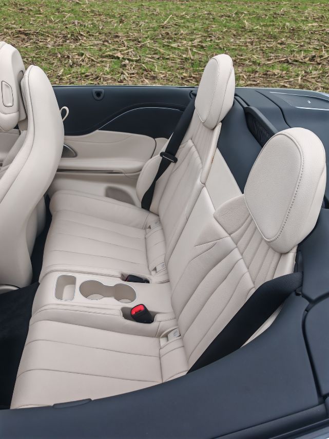 Les férus de roadster savent qu’à partir de 80 km/h, les gouttes d’eau deviennent moins problématiques avec le toit découvert. C’est aussi le cas en Mercedes CLE Cabriolet pour les places à l’avant, bien protégées par le pare-brise. Pour les places à l’arrière, avec une assise très/trop droite mais suffisamment d’espace aux jambes, il faudra passer à 130 km/h pour éviter les éclaboussures faciales. Puis à cette vitesse, le vent et le bruit finiront d’achever vos invités. Alors que le conducteur et son passager pourront toujours profiter de conditions acceptables.