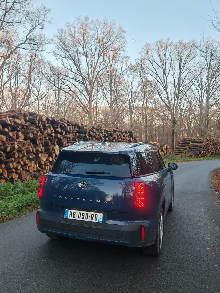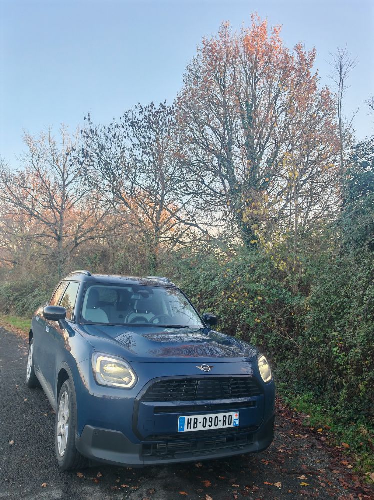Avec 1 545 kg de base et ainsi chargé, va-t-on réussir à se déplacer malgré son 3 cylindres ? Oui car il dispose déjà de 156 ch et il se dote d’une micro-hybridation de 20 ch dans la boîte auto pour porter sa puissance totale à 170 ch et surtout 280 Nm. On atteint 100 km/h en 8,3 secondes. Pour son 1,5 l de cylindrée, c’est vraiment performant. Au point même d’en apprécier son 3 cylindres alors que je déteste cette motorisation habituellement. Sachant que je sortais déjà d’un même moulin encore plus sensationnel avec la GR Yaris. La sonorité du Countryman ne ressemble pas à un vieux tracteur mais bien à une bagnole tout en restant rauque.
