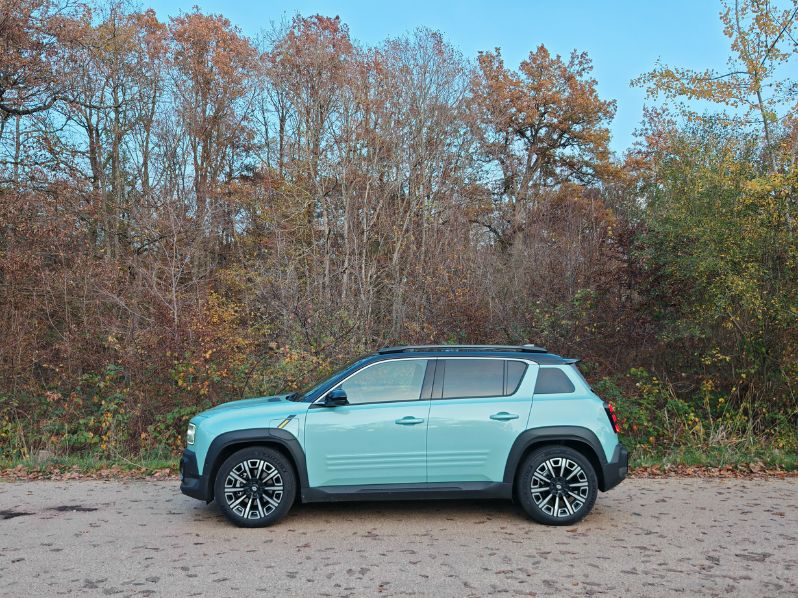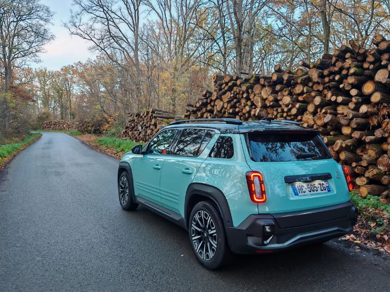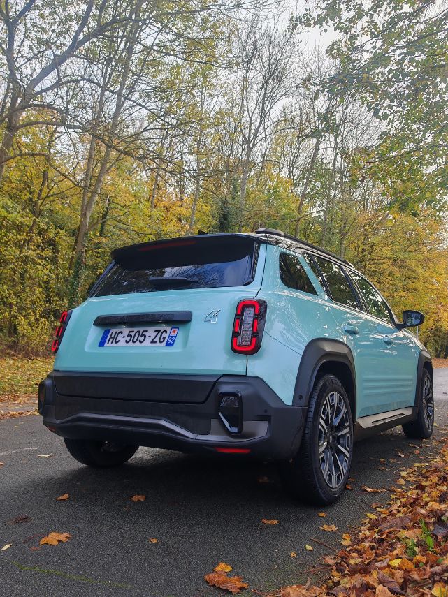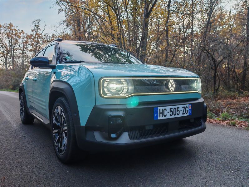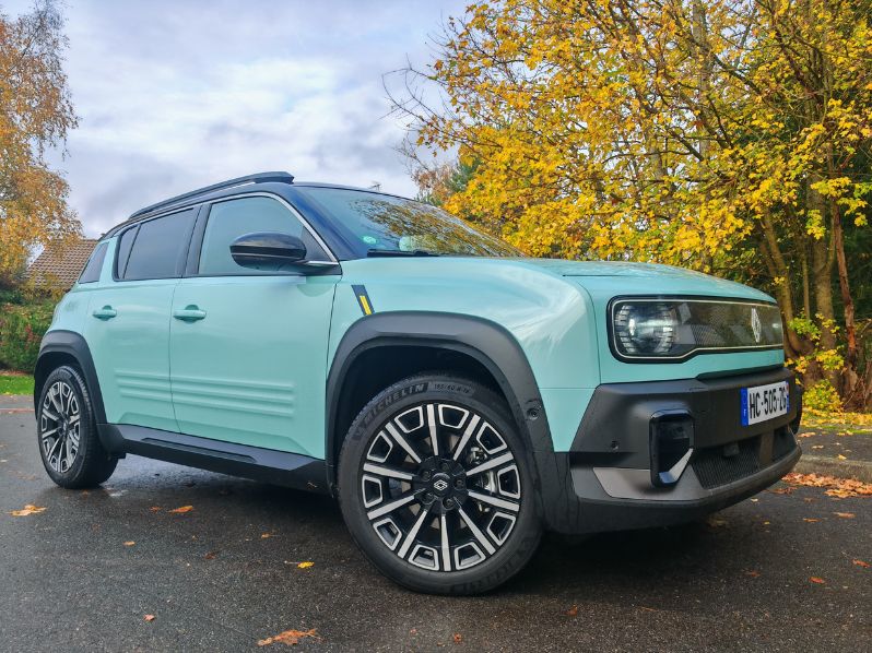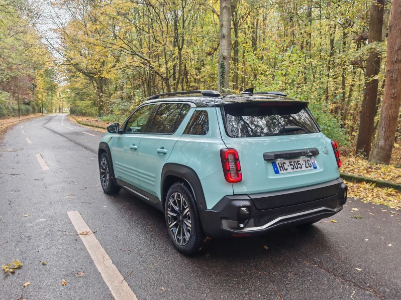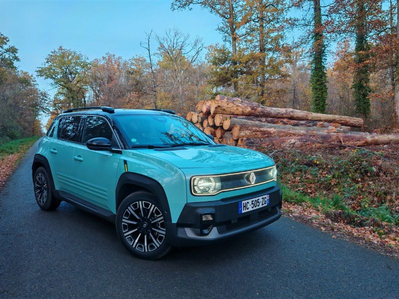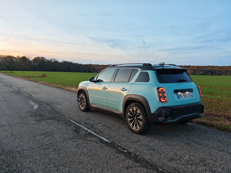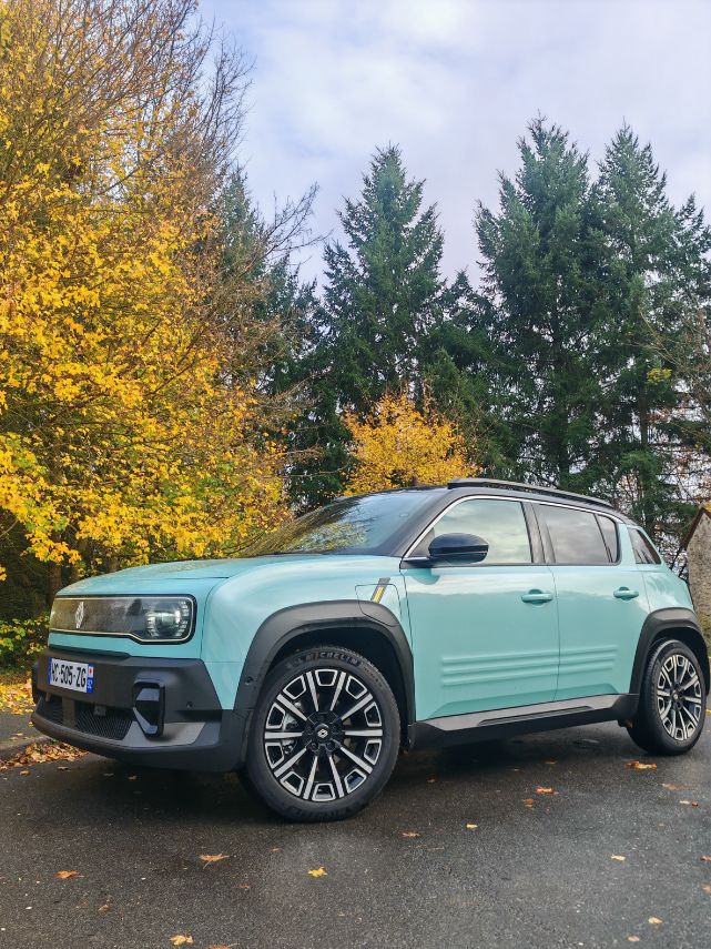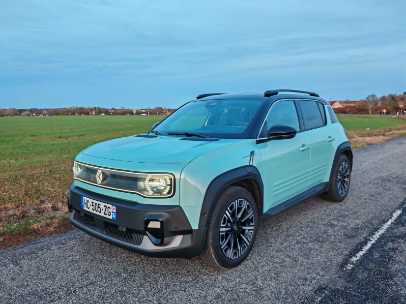 Dans cette finition haut de gamme, son tarif de 38 890 € effraie si l’on met en perspective son autonomie (on y reviendra) ainsi que sa polyvalence (on y reviendra aussi). On va aussi parler d’autres défauts mais la Renault 4 E-Tech Électrique fait partie de ces bagnoles plaisantes, surtout si on a de l’argent pour ne pas faire un choix de raison. Moins belle que la R5 mais tout aussi attrayante (avec ce bleu clair qui s’appelle Vert Hauts-de-France), pourtant dans le registre des SUV (comme la 600e) si présents sur le marché européen.