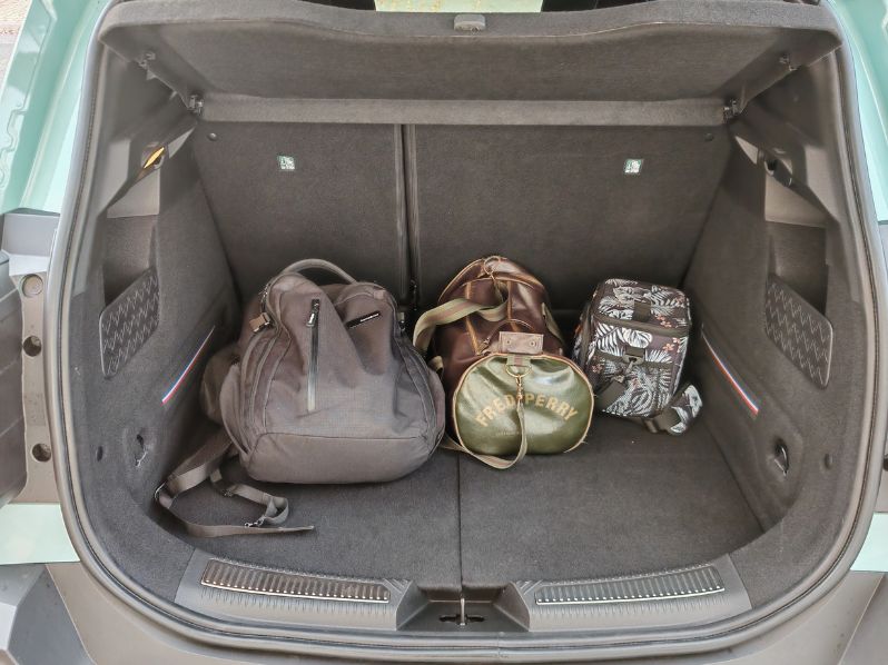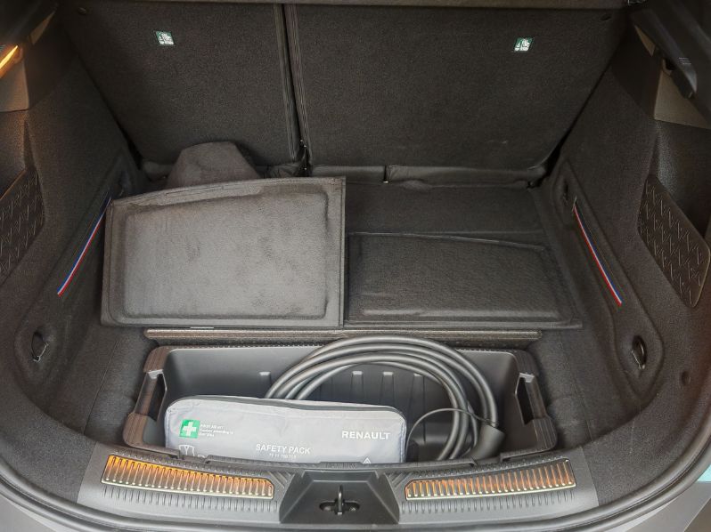 On retrouve une position haute (sans l’être trop) avec un accès et surtout une sortie facilités. Le coffre de 420 litres (et 1 405 litres avec la banquette rabattue) correspond aux attentes bien qu’il manque un frunk pour y loger les câbles. La trappe à l’arrière deviendra inutile pour ceux-ci si les sacs et autres valises se logent par-dessus. Par contre, le seuil de chargement à la bonne hauteur ne cassera plus vos lombaires. Les passagers à l’arrière disposent de place et de visibilité inconnues à la R5. Cependant, il manque toujours un espace suffisant pour glisser ses pieds sous les sièges à l’avant.
