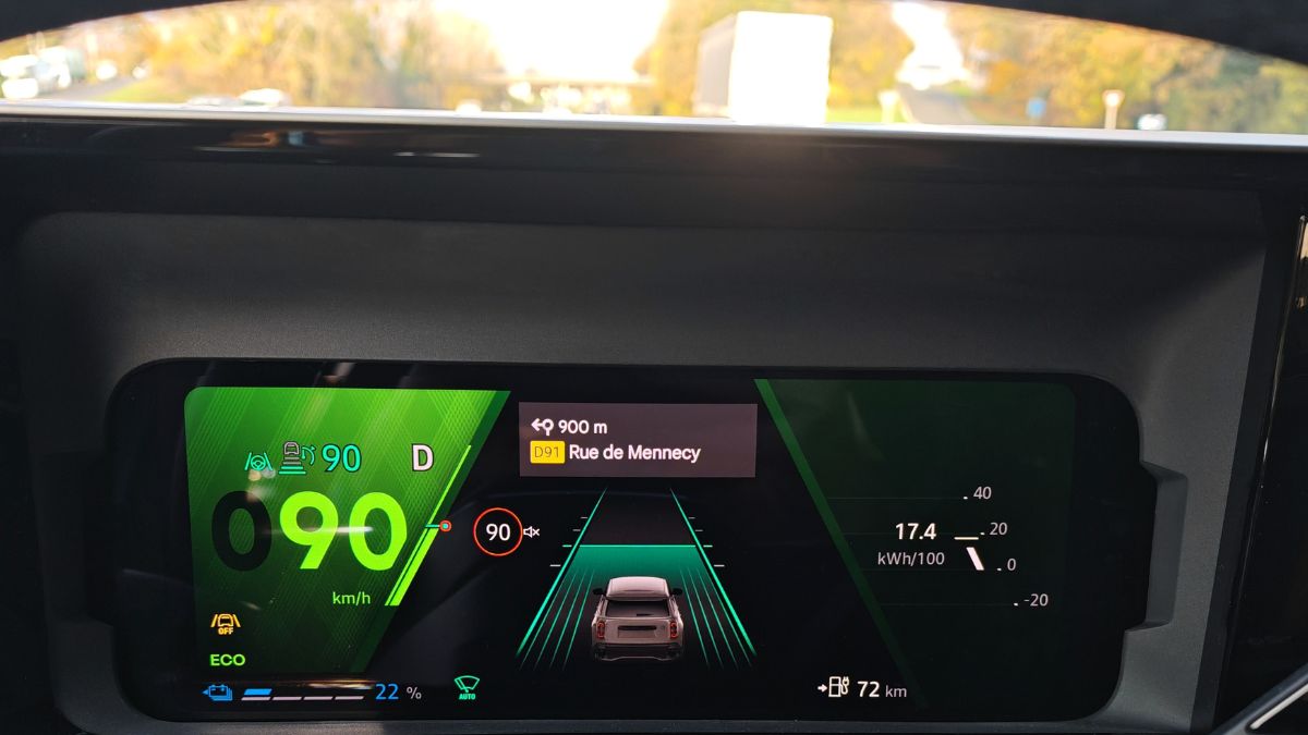 La conséquence se remarque immédiatement sur les consommations avec surtout des trajets courts n’offrant pas le temps aux batteries de se mettre à température. Donc quand on roule à 19,5 kWh/100 km de moyenne et qu’on a une batterie de 52 kWh, de fait l’autonomie dégringole à 240 km. Exactement le même problème que dans la R5.