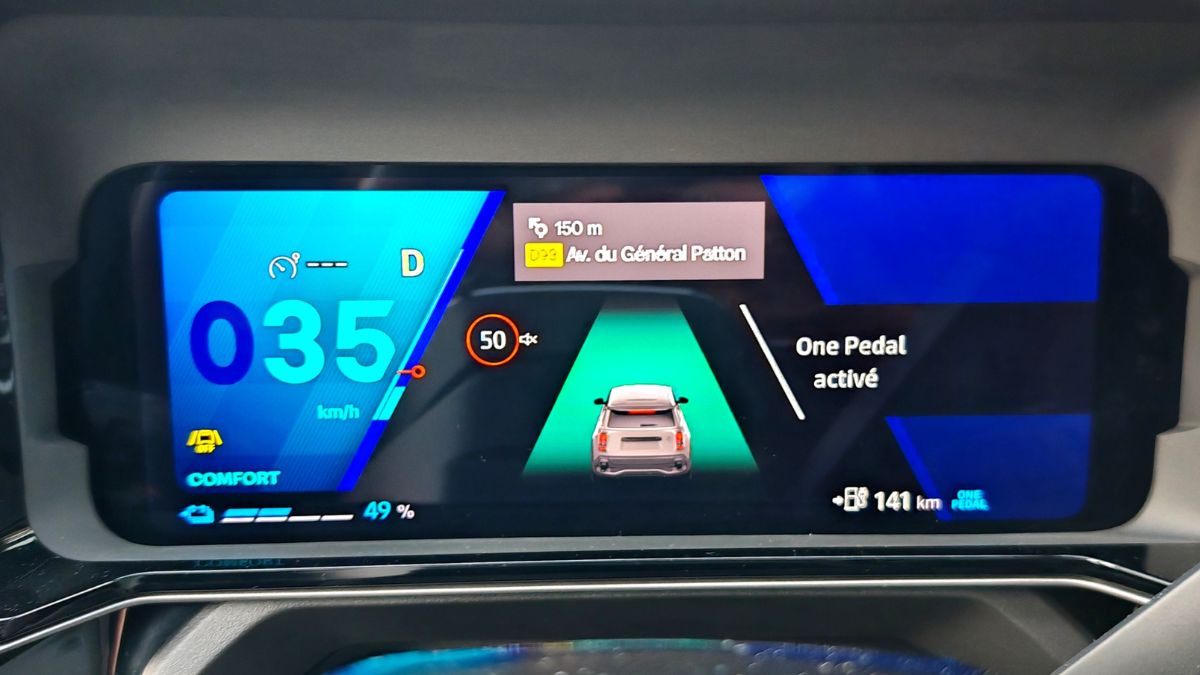 La grande nouveauté par rapport à la R5 (sauf pour les futurs modèles disposant de palettes au volant), c’est le One Pedal qu’on peut traduire par « une pédale » (compliqué à vélo) pour évoquer la conduite avec uniquement l’accélérateur. En relâchant progressivement celui-ci, le véhicule ralentit automatiquement et jusqu’à l’arrêt total. C’est merveilleux. Malheureusement, il faut le réactiver à chaque redémarrage. Alors que le véhicule devrait le garder en mémoire. On peut aussi régler le niveau d’intensité de ce freinage régénératif.