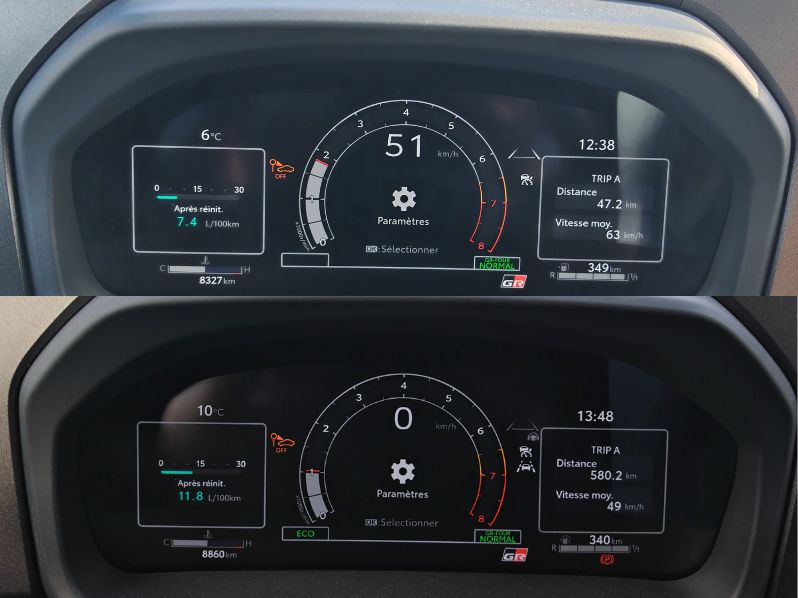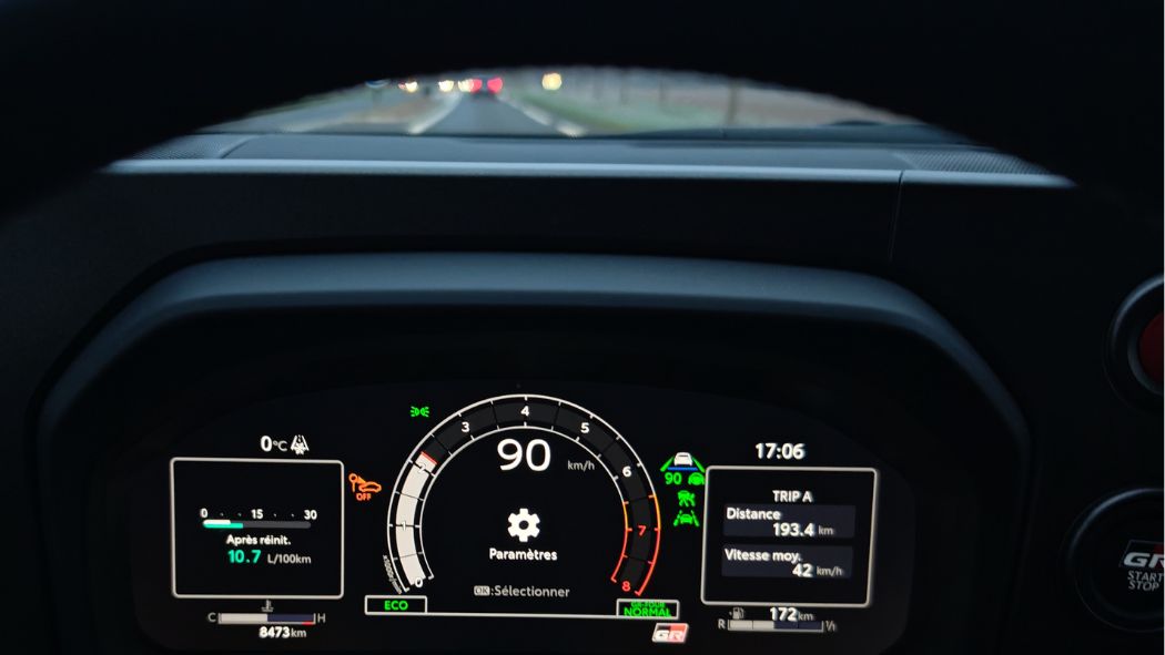 J’ai moins rigolé en regardant ma jauge d’essence. En conduite classique, on tourne souvent à 9 l/100 km avec plus en ville et moins sur voies rapides. Ce qui fait déjà mal pour un 3 cylindres. Dès qu’on pousse, on dépasse les 12 l/100 km et on tape du 17 l/100 km si on s’énerve. Donc ma moyenne de 11,8 l/100 km après 580 bornes s’avère logique. Contrairement à ces satanés ordinateurs de bord nippons qui amoindrissent volontairement l’autonomie. Du fait d’un réservoir de 50 litres, on a raisonnablement 500 km devant soi et non 400 comme annoncés. Se retrouver dans la réserve alors qu’il nous reste encore 10 litres dans la cuve d’essence, ça m’agace. Même les électriques sont moins angoissantes sur ce sujet.
