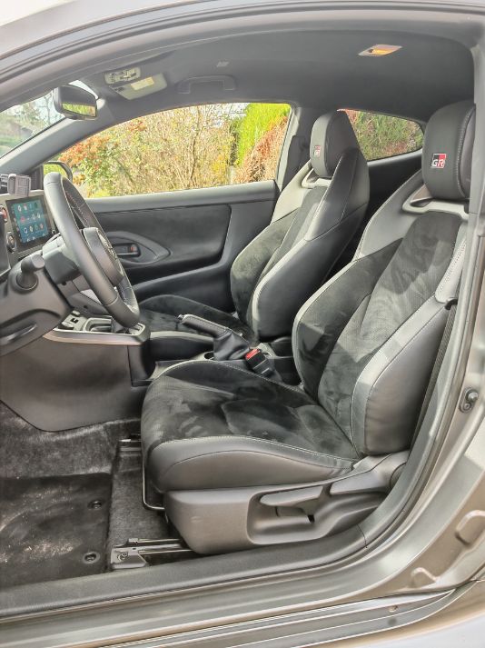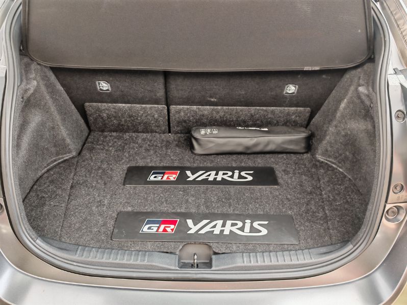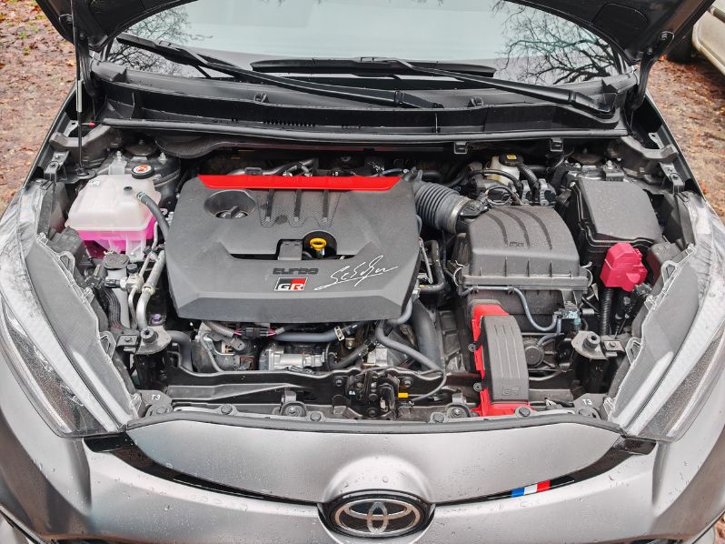 Je voulais aussi insister sur la raideur du châssis mais tous les participants du Hoonited Yvelines Festival ont jugé la GR Yaris confortable. Indubitablement, quand on s’attend à monter dans une auto de compétition, on imagine une planche de bois. Ce qui n’est pas du tout le cas en conduite dynamique. Sauf qu’en ville, avec les ralentisseurs divers et variés, on se fait parfois secouer, à subir. Lorsqu’on engage la caisse, c’est tout l’inverse. De plus, les sièges baquets proposent une assise agréable. Si on veut tatillonner un peu, on pourrait demander encore plus de maintien latéral, comme en Cupra. On voudrait surtout plus de coffre car 174 litres, c’est ridicule. Comme les places arrière, anecdotiques tant il est impossible de s’y faufiler pour des adultes et vos saletés d’enfants dérègleront fatalement les sièges avant.