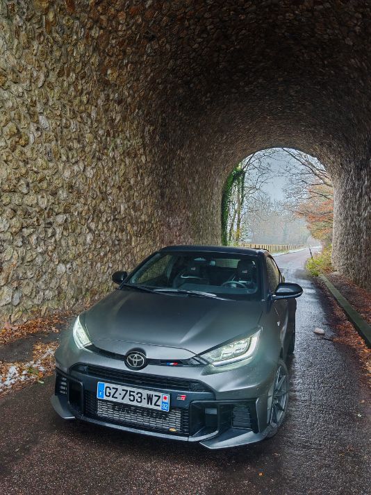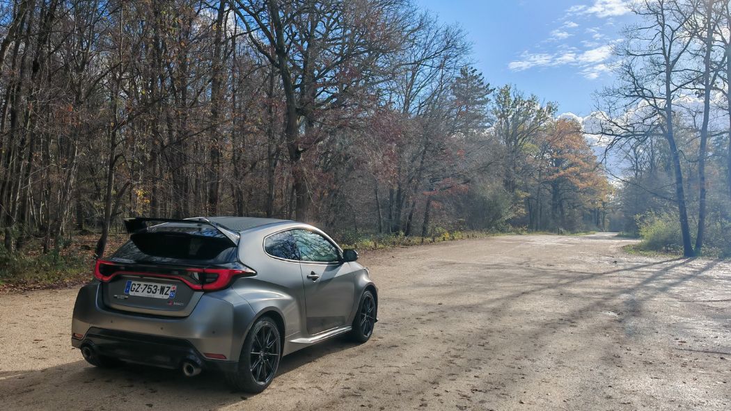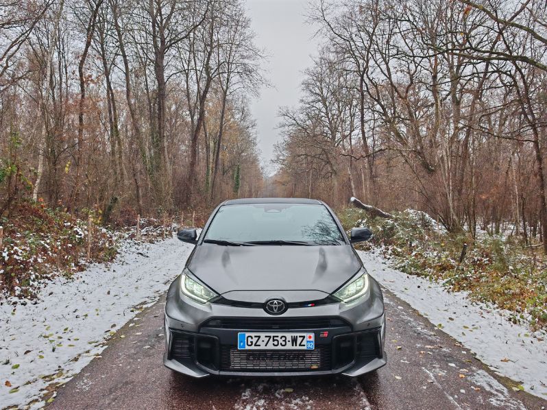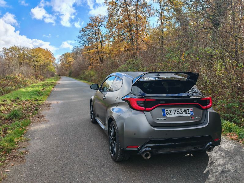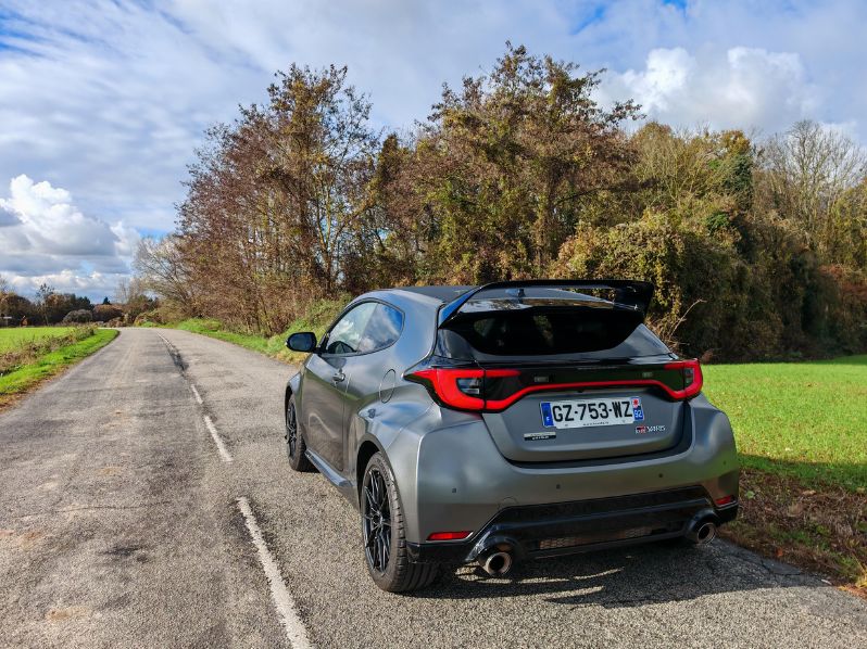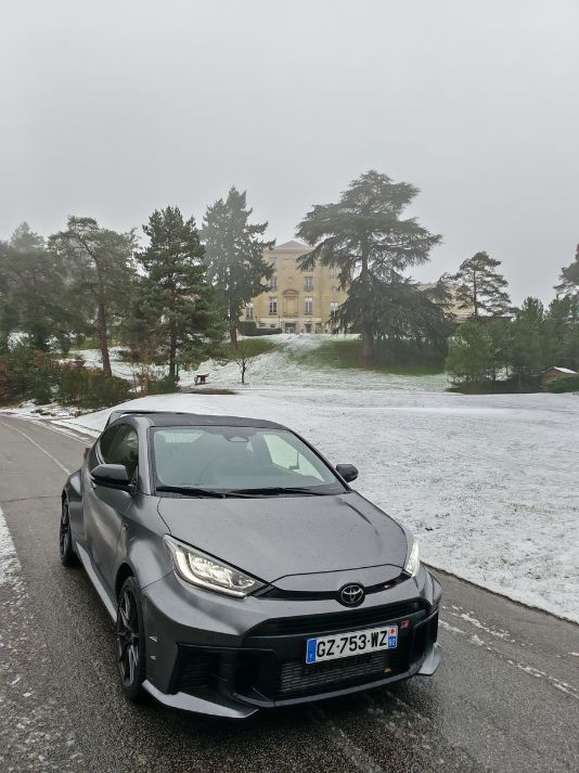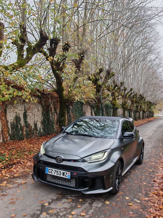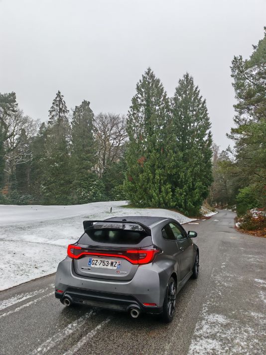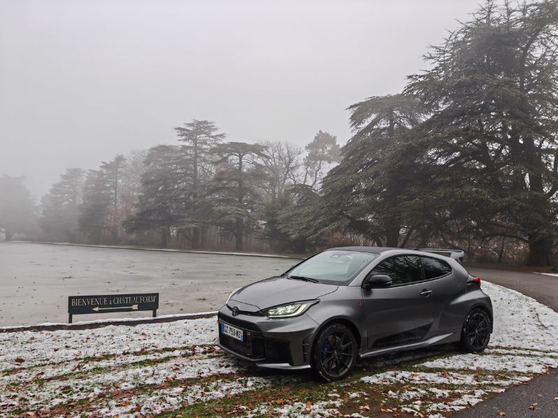 Cependant, je me suis beaucoup amusé avec cette nouvelle GR Yaris. Et je n’ai pas tant râlé sur son manque de polyvalence par rapport à mes critères habituels dont celui de disposer d’une boîte automatique et de suspensions pilotées. Impossible de l’envisager comme seule voiture du foyer en région parisienne mais si vous vivez dans des zones montagneuses ou dans des campagnes aux multiples routes sinueuses, y a de quoi se régaler. Et aussi se fatiguer. Cela reste éprouvant de conduire aussi ardemment. C’est aussi pour cela que j’ai profité du bitume trempé pour donuter en mode Seb et en coupant l’ESP. Quoi de plus récréatif que de pivoter sur la roue intérieure gauche en glisse sur 360° ? La réponse est simple : le faire sur 720°.