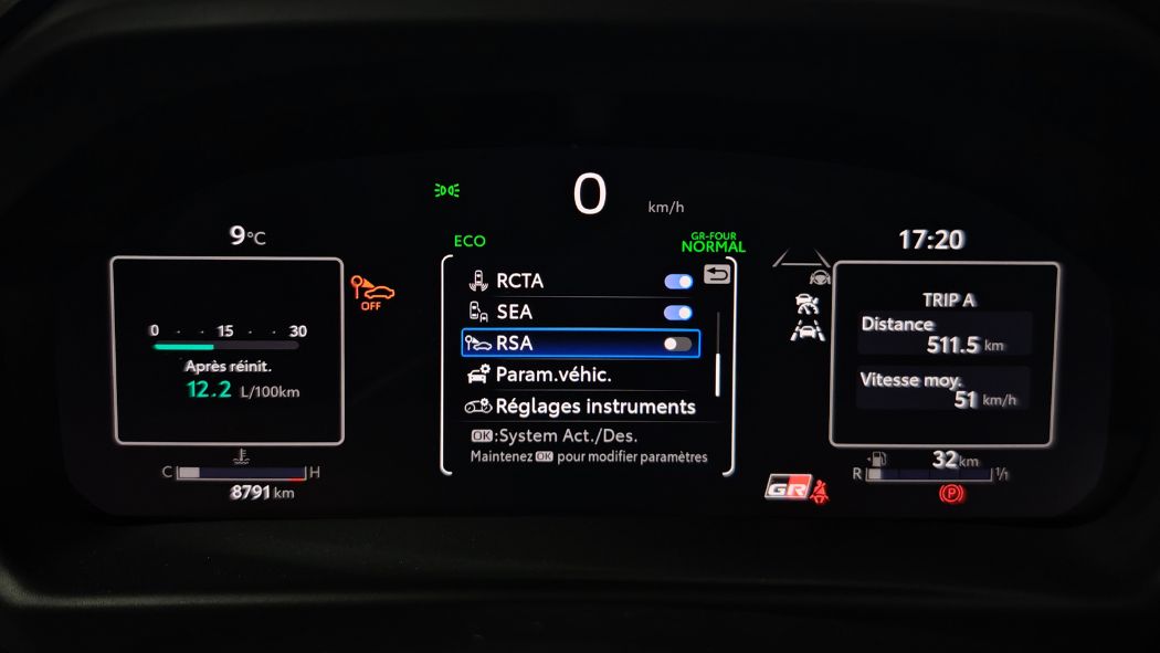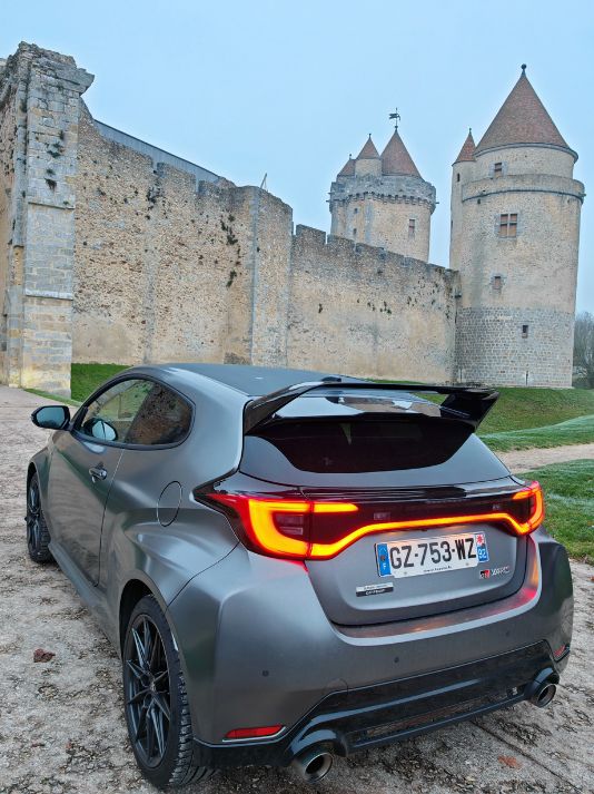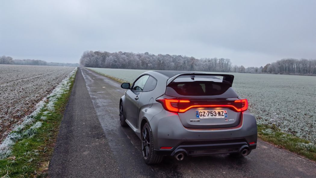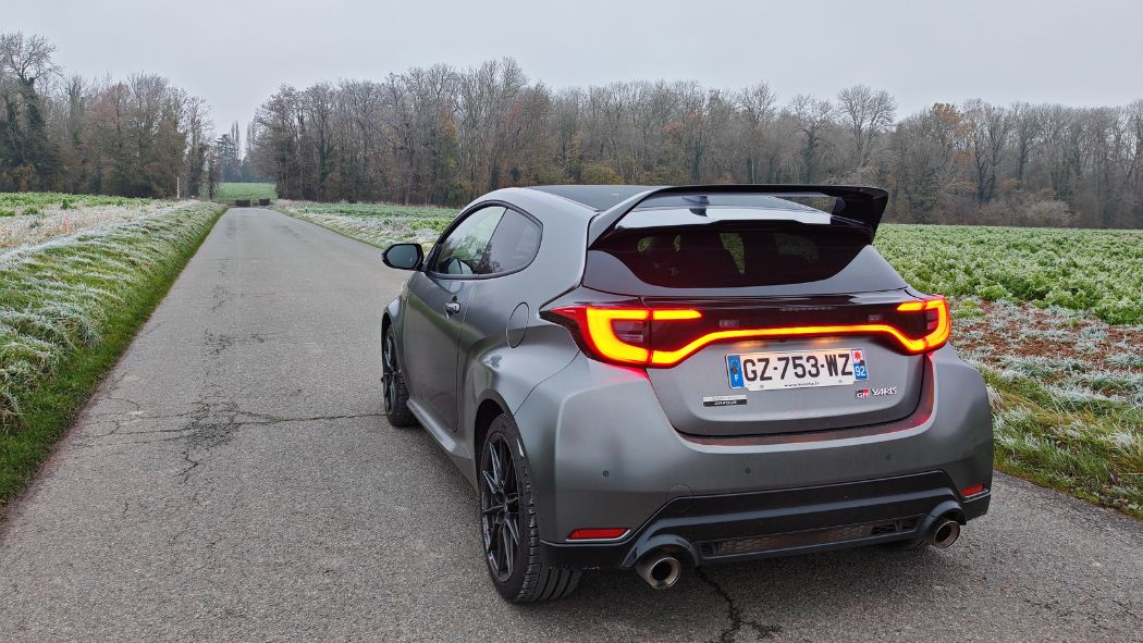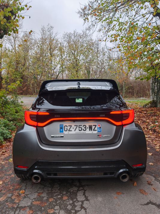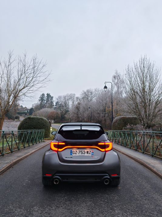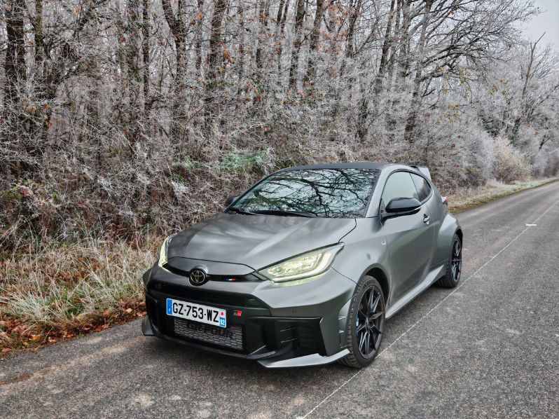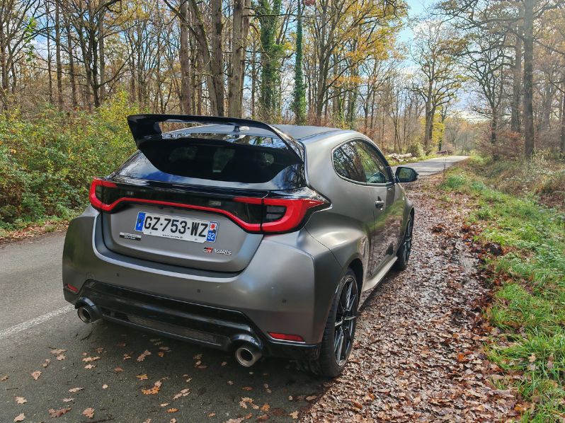 Cependant, je me suis beaucoup amusé avec cette nouvelle GR Yaris. Et je n’ai pas tant râlé sur son manque de polyvalence par rapport à mes critères habituels dont celui de disposer d’une boîte automatique et de suspensions pilotées. Impossible de l’envisager comme seule voiture du foyer en région parisienne mais si vous vivez dans des zones montagneuses ou dans des campagnes aux multiples routes sinueuses, y a de quoi se régaler. Et aussi se fatiguer. Cela reste éprouvant de conduire aussi ardemment. C’est aussi pour cela que j’ai profité du bitume trempé pour donuter en mode Seb et en coupant l’ESP. Quoi de plus récréatif que de pivoter sur la roue intérieure gauche en glisse sur 360° ? La réponse est simple : le faire sur 720°.