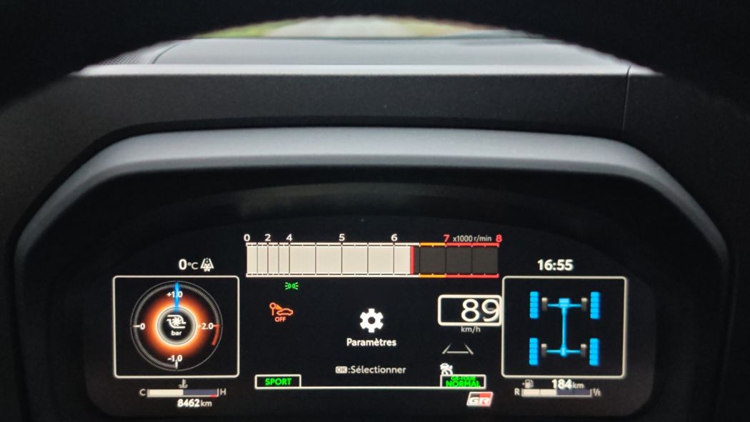 Tout est mieux aussi niveau motorisation. Elle conserve le 3 cylindres 1,6 l mais il passe de 261 à 280 ch et surtout de 360 à 390 Nm. On a l’impression de percevoir cette différence en conduisant. Bien qu’il faille encore dépasser 3 000 trs/min pour ressentir ce couple, on entend le sifflement du turbo dès 2 000 trs/min. Les premières fois, je soufflais autant que lui du fait des sensations. Juste 5,2 secondes pour le 0 à 100 km/h. On tape même du 7 000 trs/min très rapidement et le rupteur surprend. Entre le bruit et l’odeur la vitesse, on retrouve des perceptions rares de nos jours. Le faux son du moteur dans les haut-parleurs doit se couper absolument et on apprécierait presque la sonorité naturelle de ce 3 pattes.