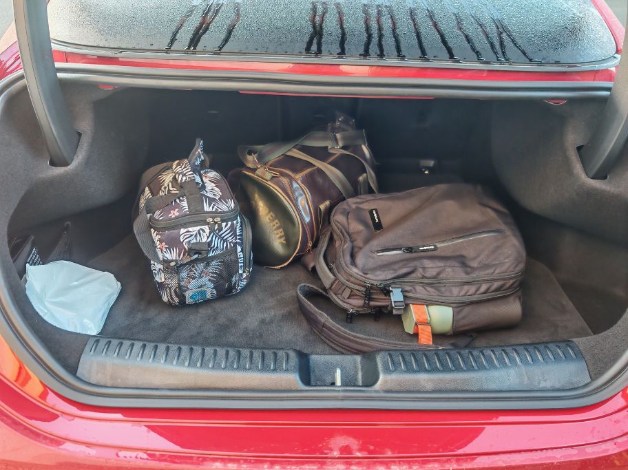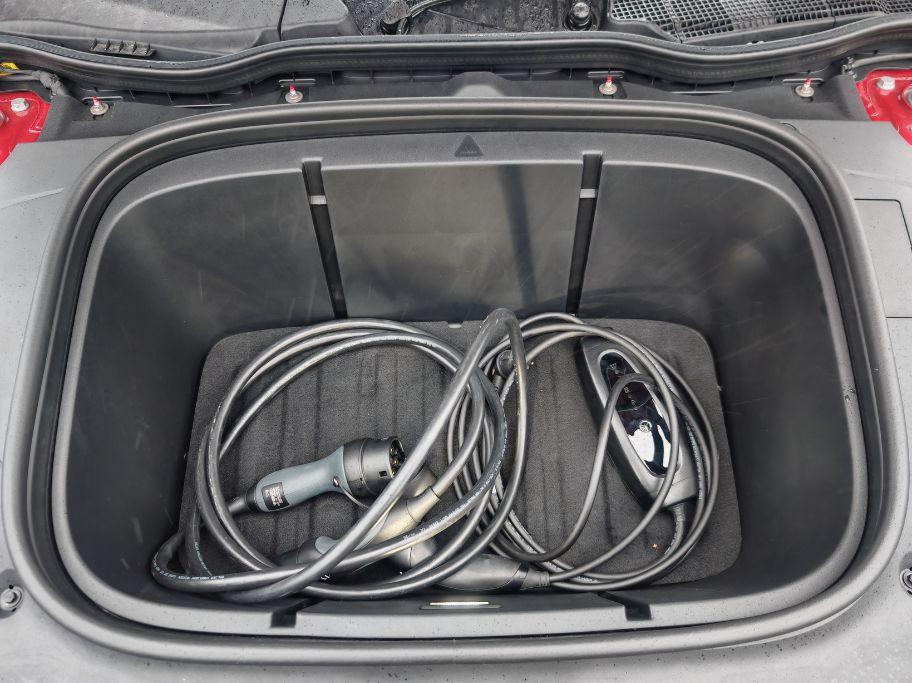 La forme trapézoïdale du coffre ne facilite pas le chargement de grosses valises et ses 405 litres semblent justes pour voyager en famille mais nous avons heureusement un frunk de 101 litres pour loger les câbles et/ou un ou deux sacs supplémentaires. Les poignées rétractables se déploient en s’approchant (avec les clés dans la poche) mais sont plus récalcitrantes pour les passagers lorsqu’on est déjà installé. Sûrement une question d’habitude mais par définition, les occupants sont plus variés (et moins fréquents) que le conducteur.